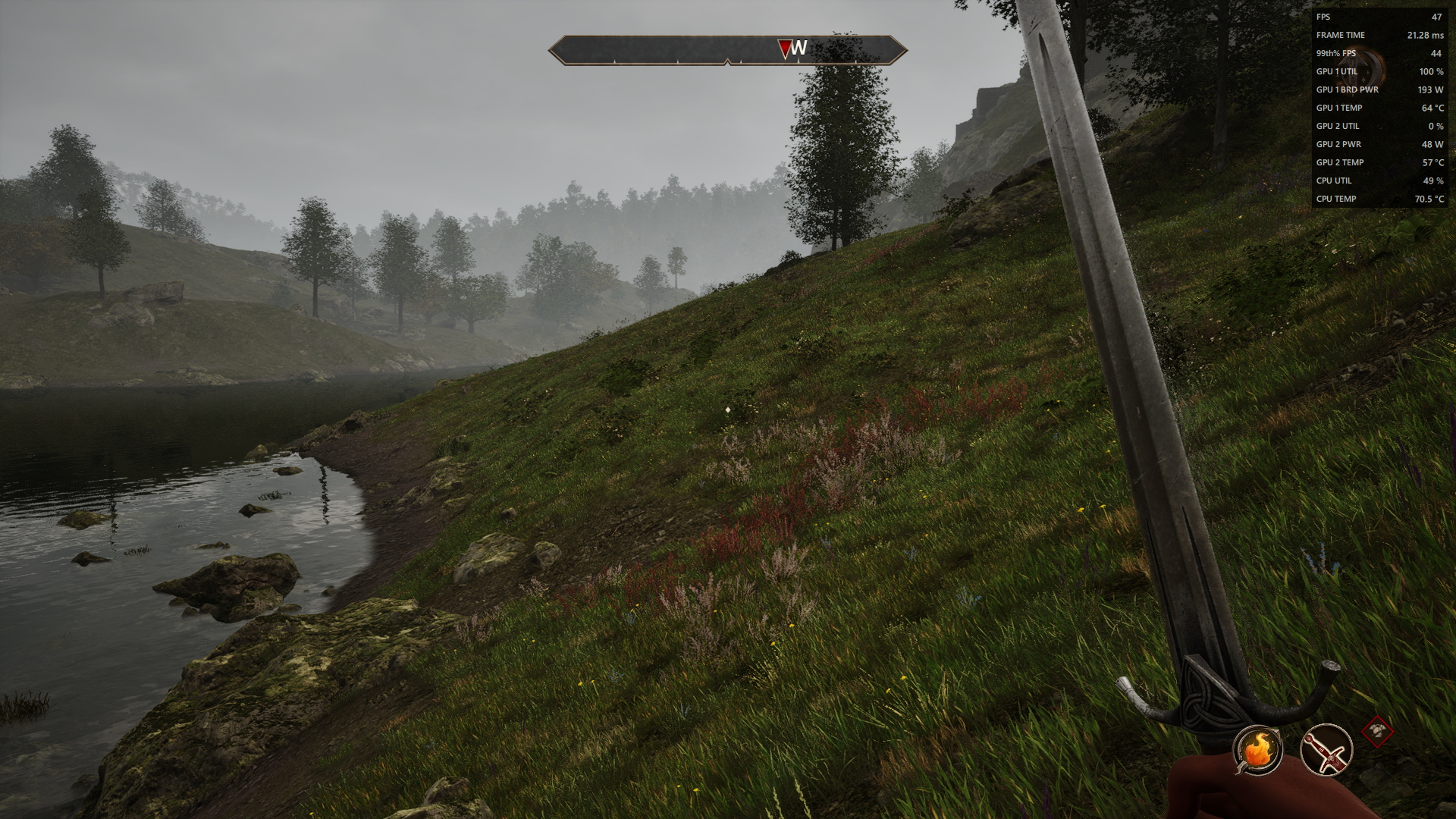 чтобы отключить Люмин, он все фепесы жрёт. Но есть побочные эффекты. В воде появляется отражение оружия, лол. Ну то есть ты стоишь на горе, смотри на озеро которое за три пизды от тебя, а в нём, нахуй на всю поверхность водоёма отражается меч, такого же размера как у тебя перед лицом на экране. Ещё за самим мечом при резких движениях появляется гостеринг. Ещё в пасмурную погоду начинают мерцать листья на деревьях. Ещё все становится слегка мыльным, будто включен абскейлинг. Я вчера побаловался, на старых карточках, 30, 20, 10 серии люмин жрёт дохуя фпс, но без него игра выглядит так себе. Лучше всё таки играть на средних с дллс и люмен софтверным.