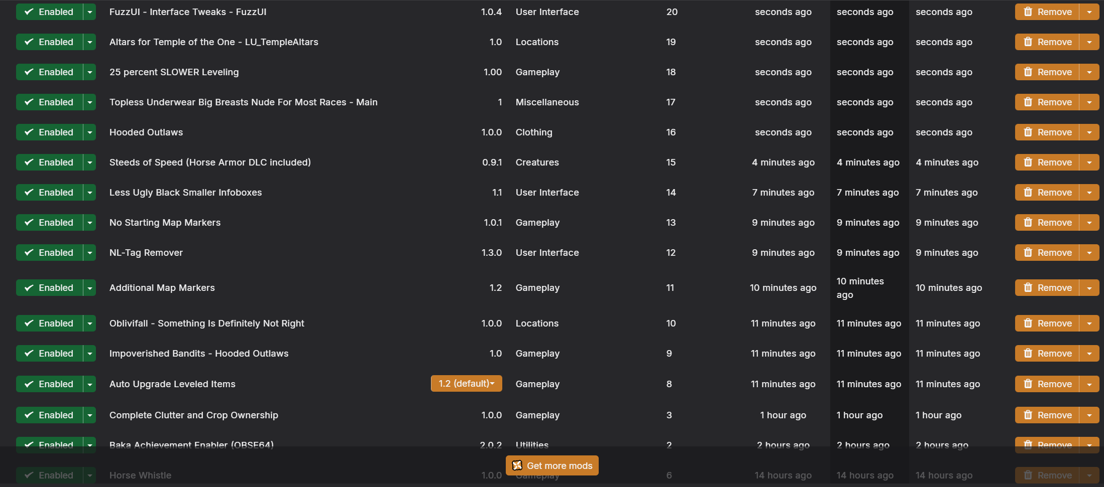 И установить Vortex Mod Manager, подключить в нём все моды и длс, отсортировать их там же отдельной кнопкой (в этот менеджер встроен LOOT). И желательно установить TES4Edit, в нём через QuickAutoClean каждый плагин почистить (чистится автоматически, ничего вручную делать не надо, только открыть QuickAutoClean и выбрать плагин, в том числе и все официальные. Рекомендуют этим инструментом чистки открывать каждый плаигн по отдельности, а не все сразу, потратьте пять минут).