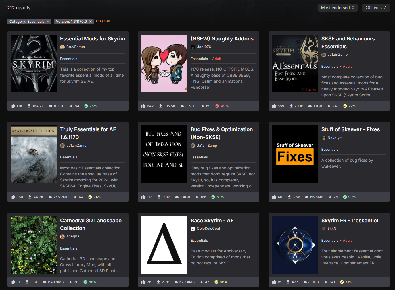 Особенности SSE: ➔ Самые популярные версии игры - 1.5.97, 1.6.640 и 1.6.1170 (Steam). ➔ Некоторые моды, связанные с SKSE, поддерживают не все версии игры. ➔ Skyrim Upscaler (есть в общей папке) и Lossless Scaling полезны как никогда. ➔ Война между проверенными старыми и перспективными новыми решениями нескончаема.