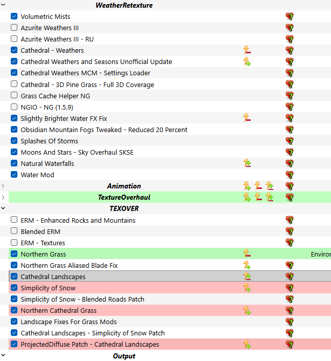 Folkvangr - Grass and Landscape Overhaul Folkvangr - Green Forest Grass Folkvangr - Green Riften Whiterun Forest Borealis WhiterunHoldForest Skyland AIO Blended Roads Cathedral - 3D Grass Library - Meshes Grass Lighting Seasons of Skyrim SKSE Nature of the Wild Lands Nature of the Wild Lands - textures options Lux Lux - Via Lux Orbis Lux (patch hub) EVLaS Obsidian Weathers Rudy ENB Obsidian Weathers Water for ENB