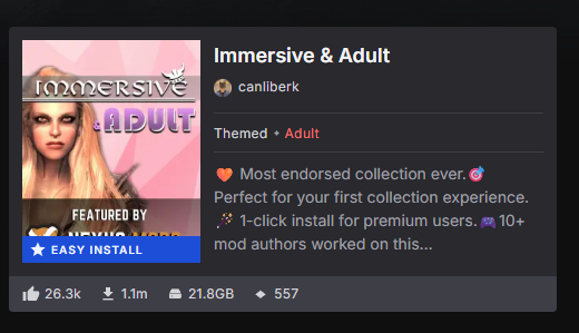 Сап, ананасы. Хочу собрать себе сборОЧКУ, но без дичи типа кандалов, рабства, аццкого БДСМ и изнасилований под каждый деревом (кроме оправданных сюжетно или квестово). Просто хочу перепройти ванильный Скайрим бафнутый графически, с доп. ЛОРным контентом и плюс чтобы была возможность романов с напарницами и напарниками, чтоб можно было с ними поебаться через диалог в снятых комнатах в тавернах или просто под кустом, чтобы была какая-то система отношений.