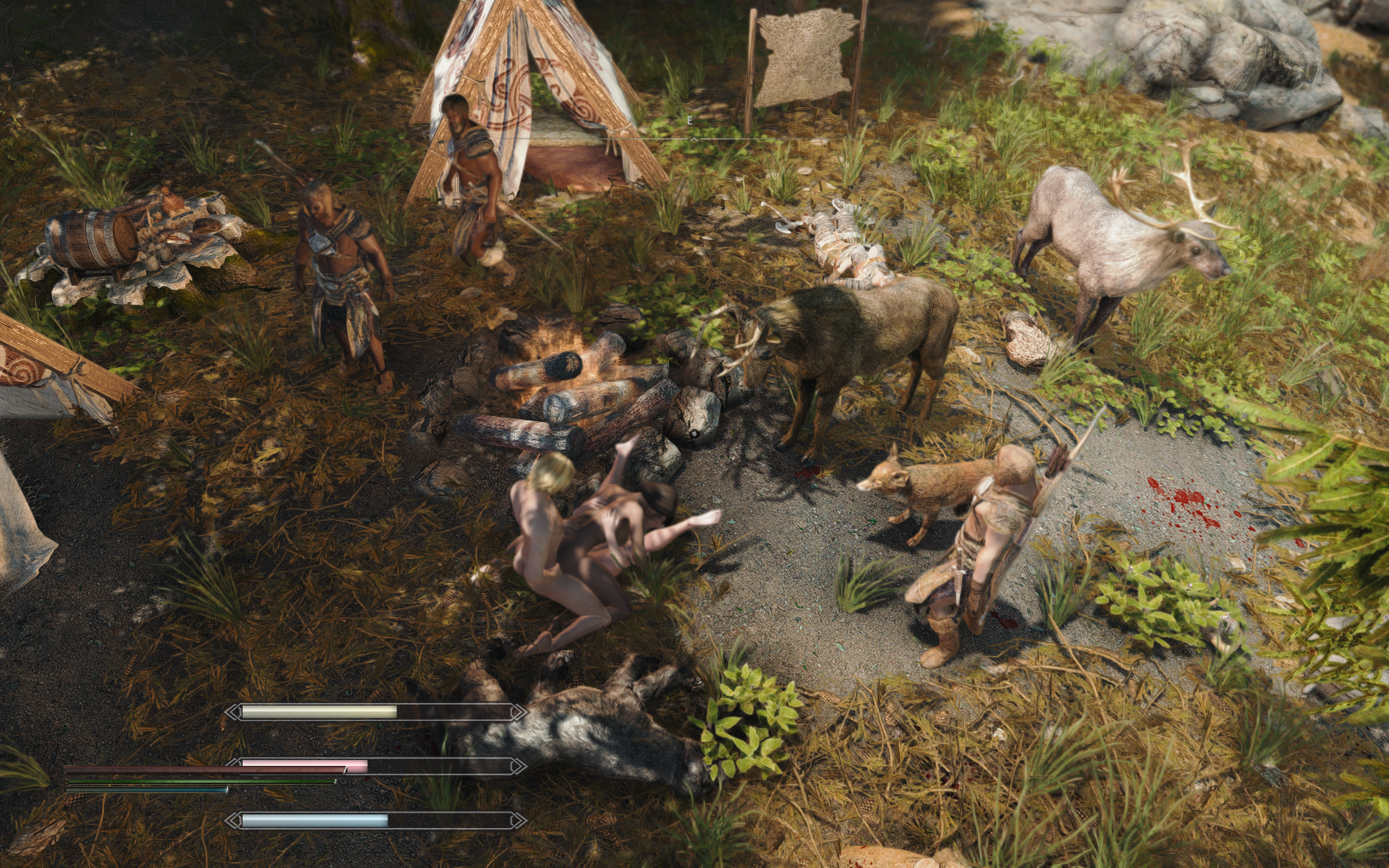 Все еще в поиске адекватно работающего дефита на остим. На скринах yamete redux. Сцена стартует, но после ебли ничего не происходит. Сценарий simple slavery не запускается. А еще на звуки ебли собралась толпа зевак и зверушек. При чем они враждебны к насильникам, и после сцены начинают пиздиться. Все это напоминает 2016-18, когда все эти моды только начинали появляться, и все работало криво. Вот только у данного мода дата последнего обновления в 2022 году. Что намекает на пиздец и хтонь, что не сделают нормальный мод на боетрах с интеграцией остима.