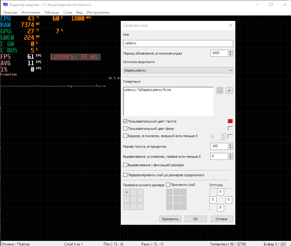 >>2037297 rtss + msi afterburner все датчики с msi afterburner, за исключением displaylatency там ниче сложного в настройке, за исключением того ньанса что 1% фпс, 0.1% фпс и график фреймтайма включаются только тогда когда активен бенчмарк ---- displaylatency вывожу в самом rtss - setup - plugins - overlayeditor - источники данных - редактировать - добавить - PresentMon (это утилита от интелл) альтернативный способ - это через утилиту нвидиа nvidia reflex она точнее но с ней больше ебли -