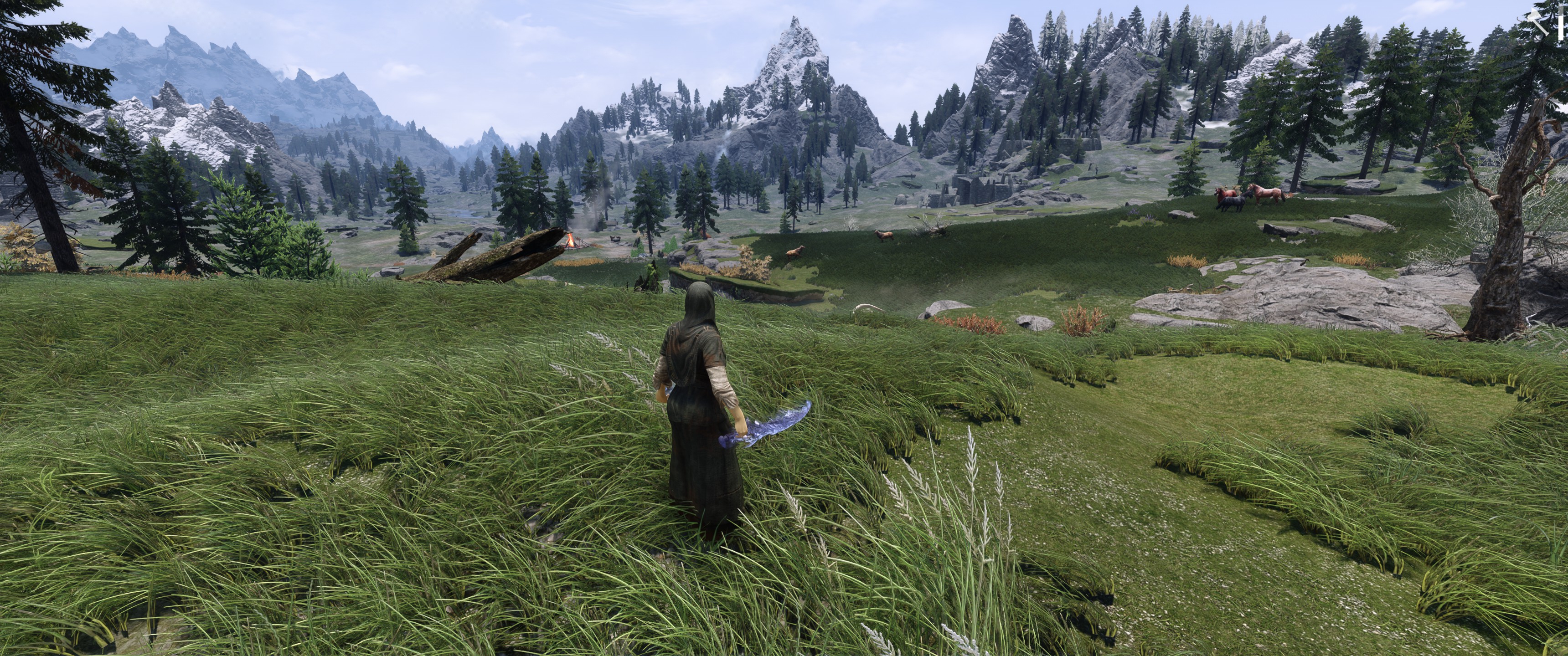 Знаете, что реально бесит блять? Генерация травы. Вот накатил ты графончика, круто всё, вроде вблизи смотрится нормально, не вырвиглазно +\- в соответствии с оригиналом, но... Стоит тебе выйти, блять, на более-менее открытое место, как сразу виден это ПИЗДЕЦ через 100 метров. Даже интересно, почему именно так уёбищно Тодд реализовал лоды, какие были технические ограничения в 2011 году, чтобы сделать механизм генерации лодов нормальный? А самый, блядь, уебищный кек, так это то, что я купил 5090, но вот беда - во время сборки оказалось, что или прцоессор или материнская плата - попросту не работают, поэтому я уже неделю сижу и пержу (ожидая пока материнскую плату проверят в СЦ) с картой в шкафу, играя в 24-30 фпс на старом ноутбуке, пиздец просто