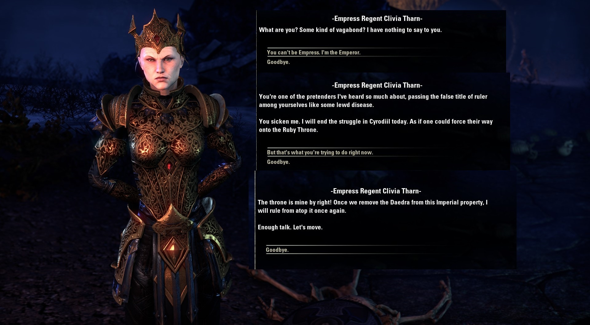 Почему все варианты ответа в диалогах у ГГ как у аутиста? Захуй вообще нужны варианты ответа, если он всего один? Почему я, ИГРОК, должен терпеть шизовысеры протагониста, которого сам создал и которому подарил облик? Зосы ТУПЫЕ??? Варкрафт давно предложил идеальную систему, НАХУЯ ПЫТАТЬСЯ ЗАСТАВИТЬ АВАТАР ВЫГЛЯДЕТЬ ЖИВЫМ??? ЗАЧЕМ ЕМУ ХАРАКТЕР ВООБЩЕ??? причем характер сдвгшницы с альцгеймером?!