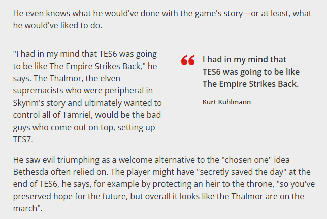 Ну а вообще - ТЕСО точно не пилили никакой отсебятины и ничего из жопы не брали, я более чем уверен, что всё было через Бесездовских консультантов и их личного одобрения. И я более чем уверен, что Тодд изначально обозначил все запретные темы и то про что они не должны ничего придумывать и писать, что не могут трогать, и чётко обозначил границы их творчества.