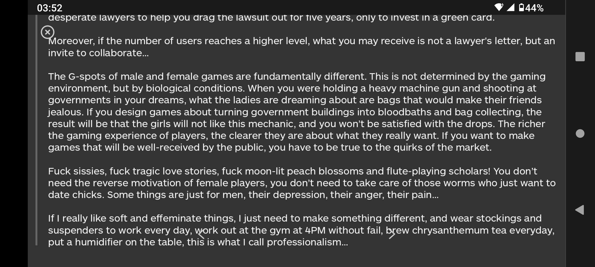 >>8270206 Ну так а дальше, дальше то что? Григорович может только сегодняшним днём жить? Вперед вообще не заглядывает? Сейчас он проебал с концами всю свою фанбазу, а после релиза, когда даже слепому вскроется что никакой игры у него нет и он нагло пилил всё это время бюджет, он проебет и авторитет Большого Бизнеса. Ну кто с ним захочет работать после того как он прилюдно опустил Мелкомягких в лице Фила? Нет, я, конечно, догадывался что хохлы дегенераты пиздец просто, но чтоб настолько, чтоб ВСЁ вложить в одну единственную аферу? Украл-выпил-в_тюрьму, вот это что ли предел мечтаний такого человека? Ну хуй его знает, анон. Сюрреалистично это всё как-то.