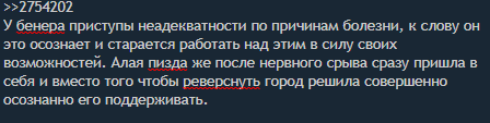 У беннера приступы неадекватности по причинам болезни, к слову он это осознает и старается работать над этим в силу своих возможностей. Алая пизда же после нервного срыва сразу пришла в себя и вместо того чтобы реверснуть хекс решила совершенно осознанно его поддерживать.