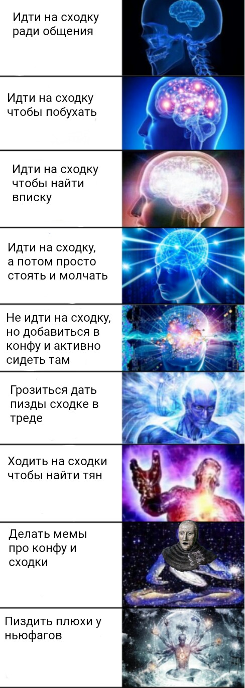 FAQ: 1. Сходка еженедельная, без отмен. Так-же есть сходки в среду и пятницу, и они тоже проходят стабильно с множеством анонов. Среда: ст. метро Чистые пруды, памятник Абаю, после 18:00. Пятница: Беседка в парке Сокольники 18:00. Подробнее см. второй пост ИТТ. 2. Если ты хиккан или омежка, то не беспокойся, рады всем. 3. На сходке в среднем 20-30 человек в это время года. 4. Если хочешь в бар, то иди нахуй ( сюда - @wearedc) 5. Сходки проходят обычно до закрытия метро, но иногда аноны остаются гулять на всю ночь. 6. Тянки есть, но преобладает мужская компания. 7. На сходках прежде всего общаемся. Так же выпиваем и весело проводим время. 8. Возрастная категория людей очень расплывчала, от 17 до 44 лет. Короче говоря всем рады и большинство находит единомышленников и общения, за которым приходит. Тебе понравится.