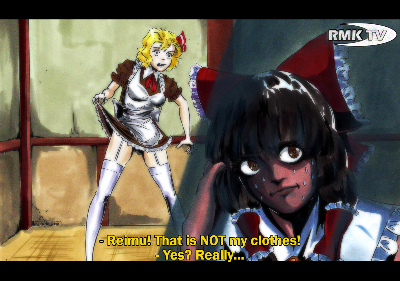 >>126479 Навёрстываешь упущенной, старик? О, да ещё и сюда сначала запостил. Экслюзив! Чисто делюсь фантазией: Юкари в "приличной" кожанной одёжке сидит на офисном кресле, сбоку у её ног на поводке сидит почти голая Рейму. Юкари обращается к зрителю, говоря, мол:"Я бы пустила вас в мир грёз, но эта сука хочет денег~"