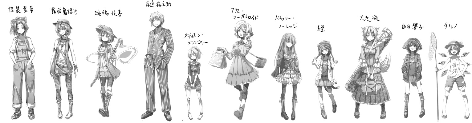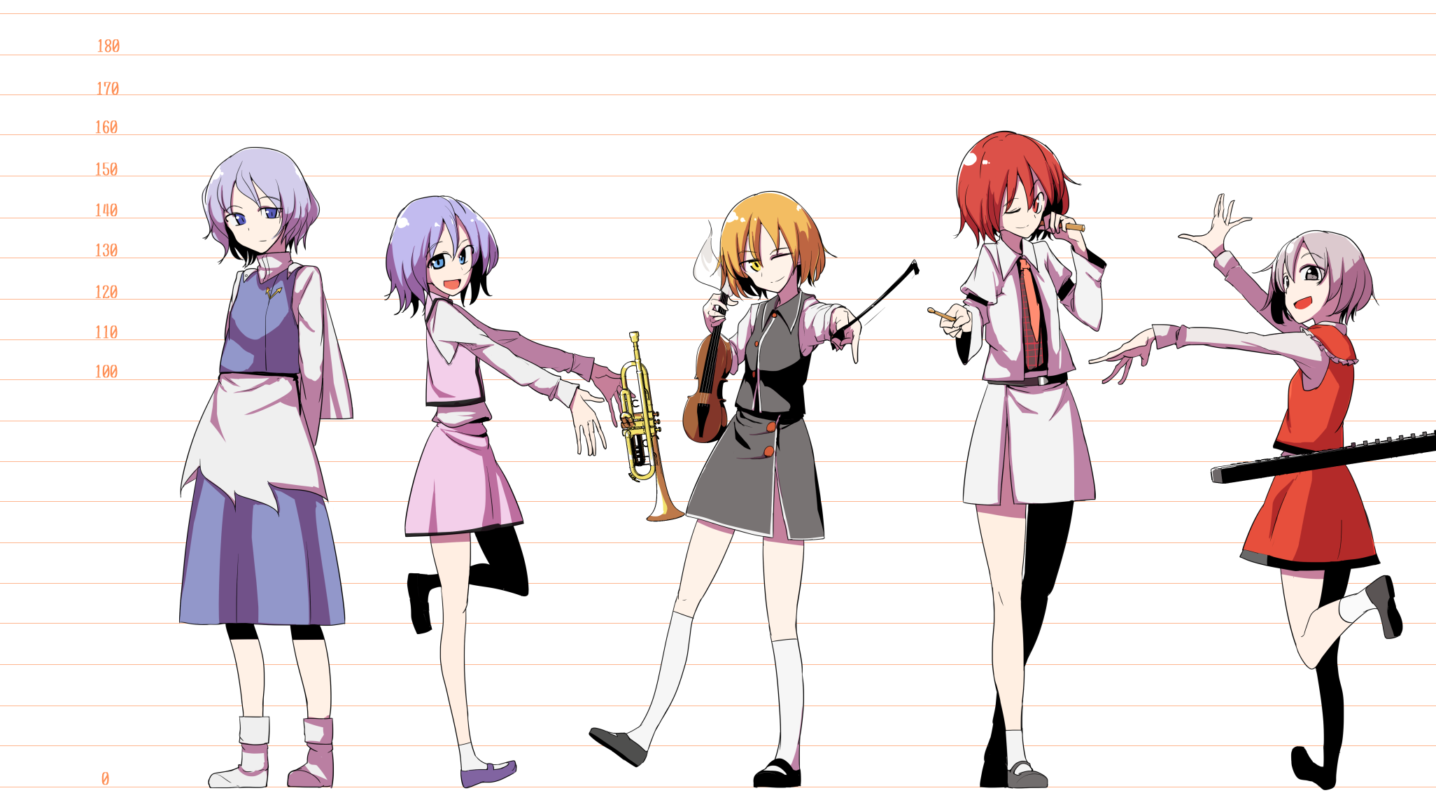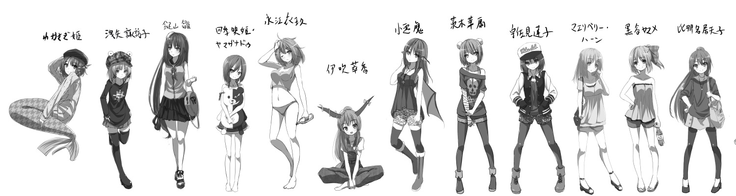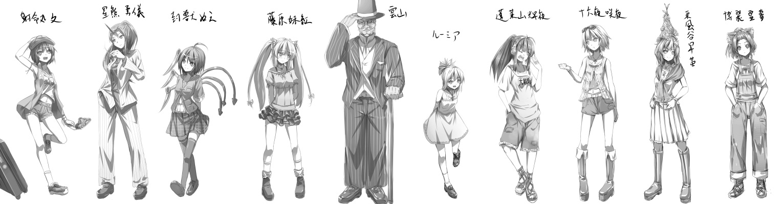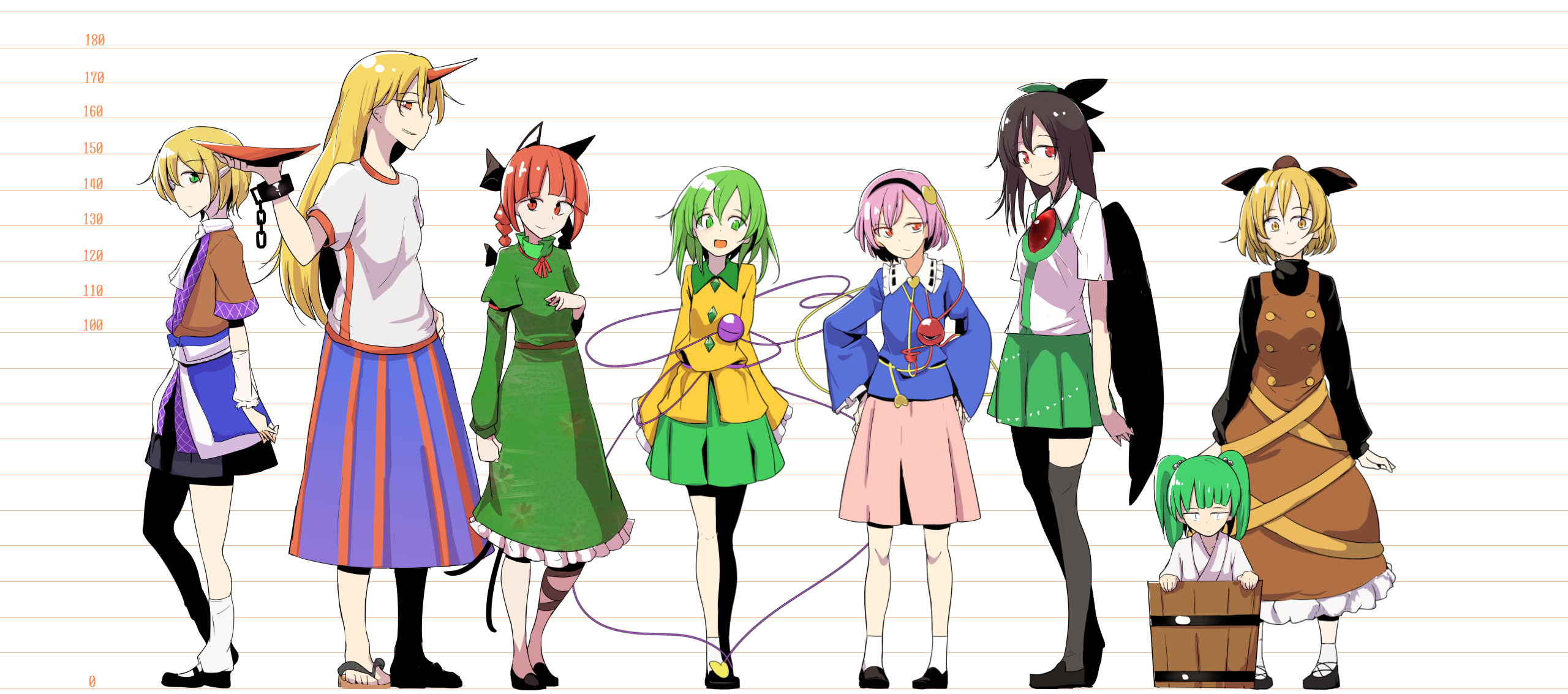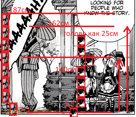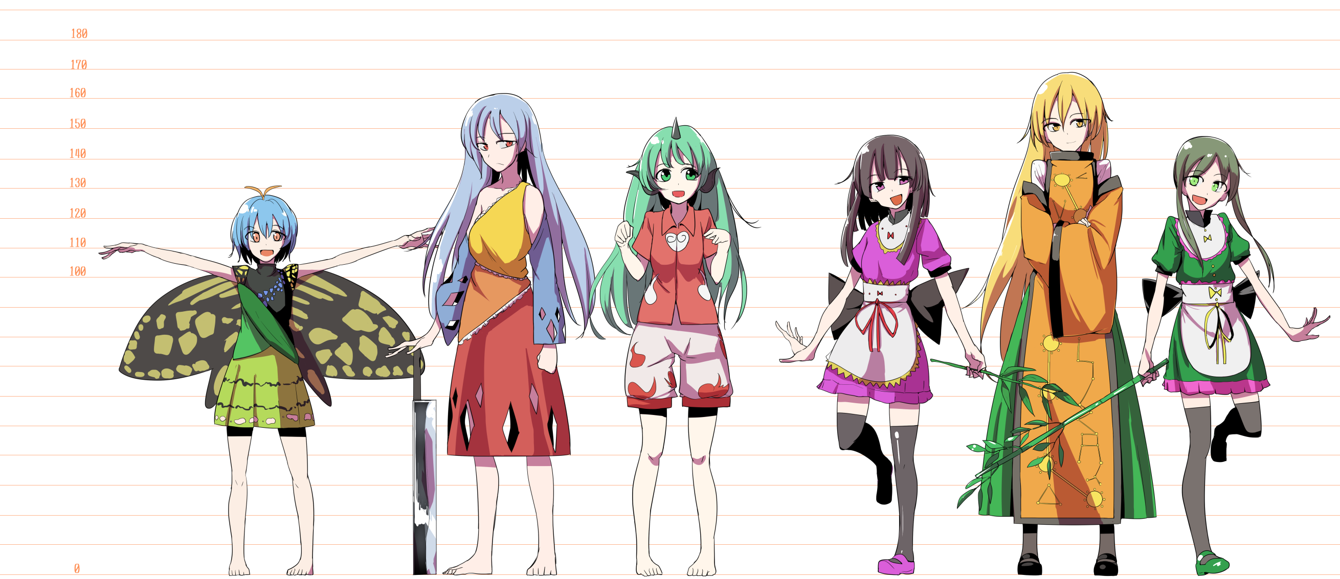 Так все-таки насколько они высокие? Есть ли какие-нибудь цифры по этому поводу? Ну или какими их представлял себе Зун? Или он определял их по категориям "повыше Рейму", "как у Рейму", "чуть пониже Рейму", "loli size". Или тут все так же расплывчато как и с размером груди? Можно ли считать, что рост у Рейму, Марисы и Санаэ примерно как у обычных японских старшеклассниц? Тогда что с остальными? Среди них ведь очень много екаев, причем довольно разнообразных. Что можно сказать про тех, кто "екай потому-что екай", вроде Юкари или Юки? Можно ли сравнивать рост по тому, как их изобразили в манге или файтингах? Знаете, мангаки иногда выкладывают картинки, где изображают в ряд своих персонажей, указывая их рост и вес (вроде пикрилейтед). Теги нашел height_chart и height_comparison (может еще есть). Хотелось бы увидеть что-нибудь подобное, одобренное Зуном.