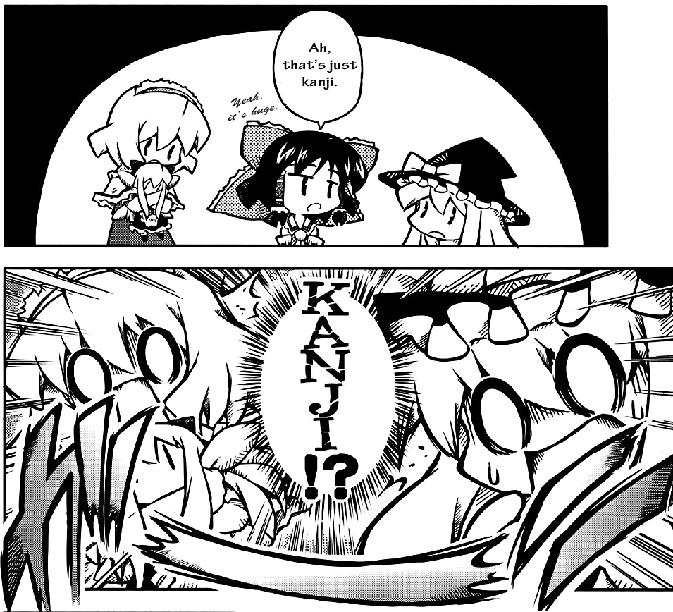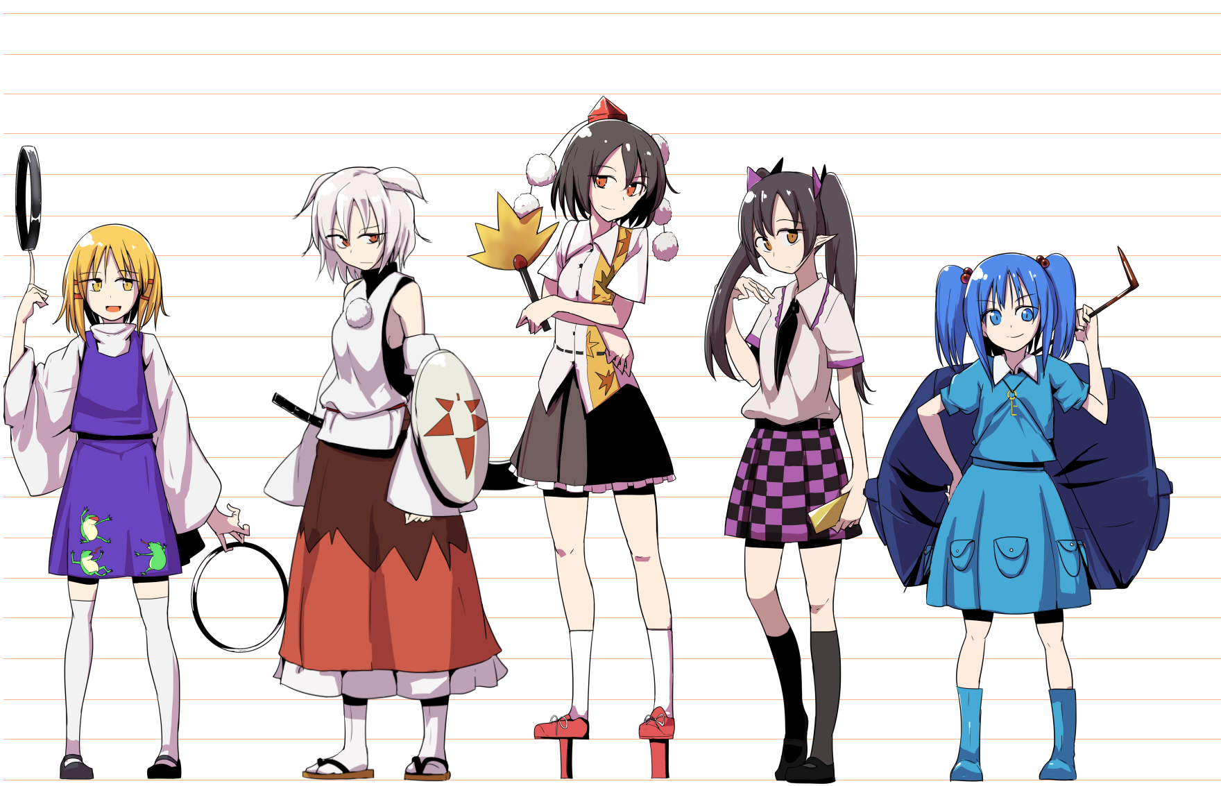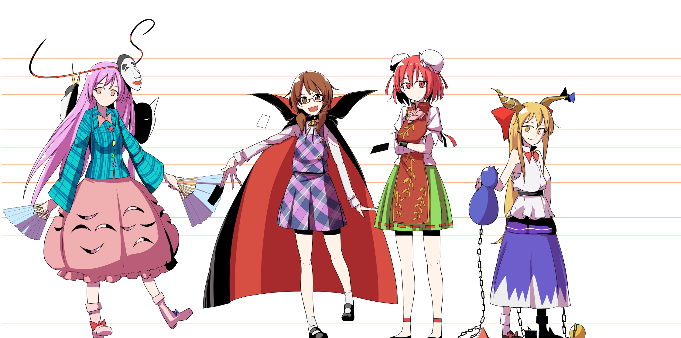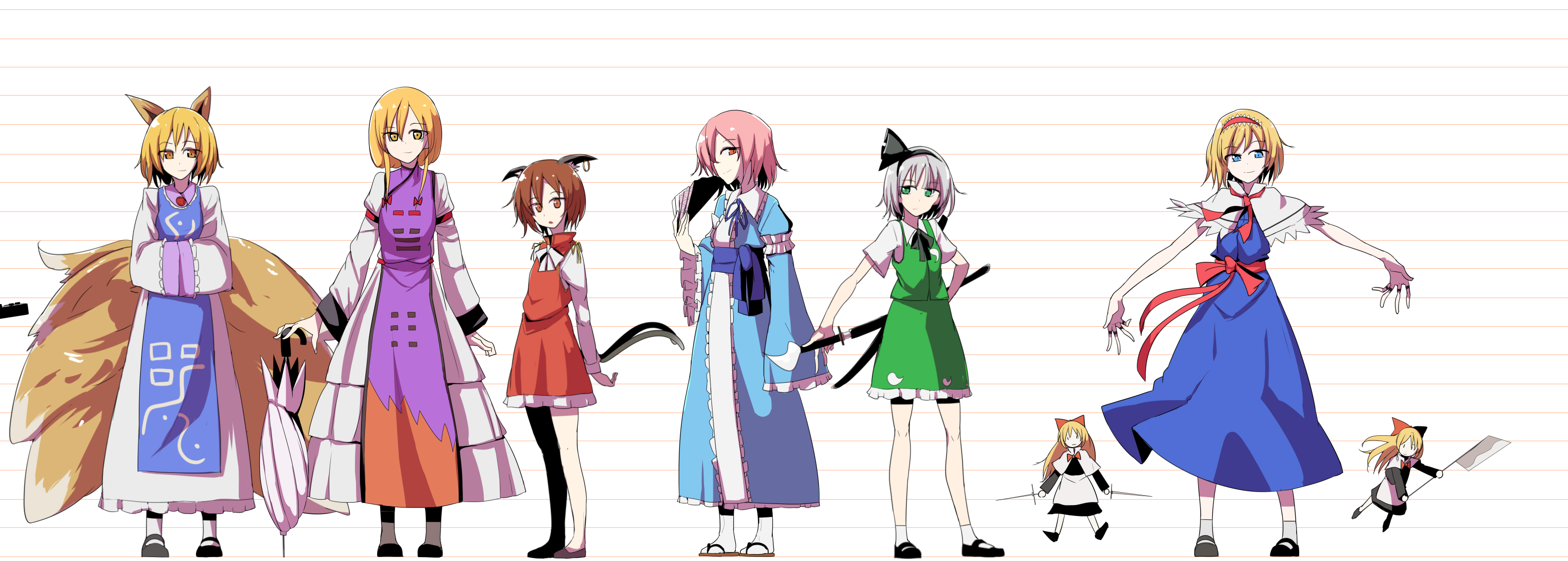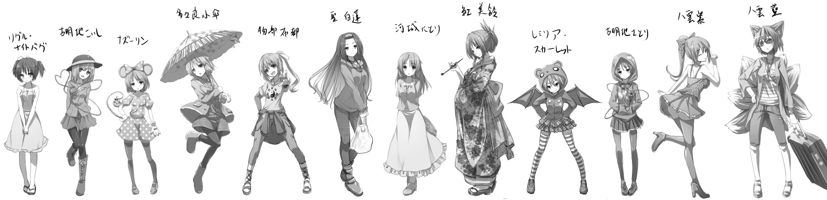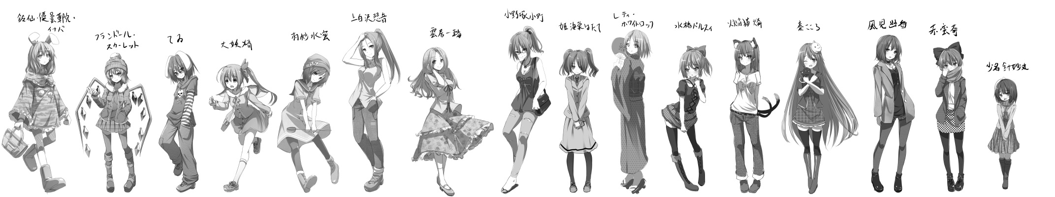 Так все-таки насколько они высокие? Есть ли какие-нибудь цифры по этому поводу? Ну или какими их представлял себе Зун? Или он определял их по категориям "повыше Рейму", "как у Рейму", "чуть пониже Рейму", "loli size". Или тут все так же расплывчато как и с размером груди? Можно ли считать, что рост у Рейму, Марисы и Санаэ примерно как у обычных японских старшеклассниц? Тогда что с остальными? Среди них ведь очень много екаев, причем довольно разнообразных. Что можно сказать про тех, кто "екай потому-что екай", вроде Юкари или Юки? Можно ли сравнивать рост по тому, как их изобразили в манге или файтингах? Знаете, мангаки иногда выкладывают картинки, где изображают в ряд своих персонажей, указывая их рост и вес (вроде пикрилейтед). Теги нашел height_chart и height_comparison (может еще есть). Хотелось бы увидеть что-нибудь подобное, одобренное Зуном.