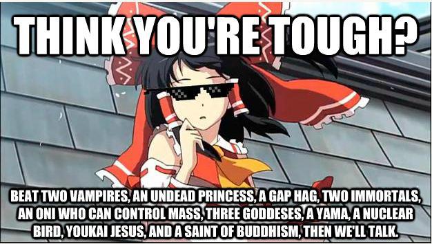 Только это нахуй никому не нужно. Мериться письками в тохо на любительском уровне (если вы конечно не супер плеер топ-10 скор перфект лунатик) это так же глупо и уныло как сеансы групповой медитации.