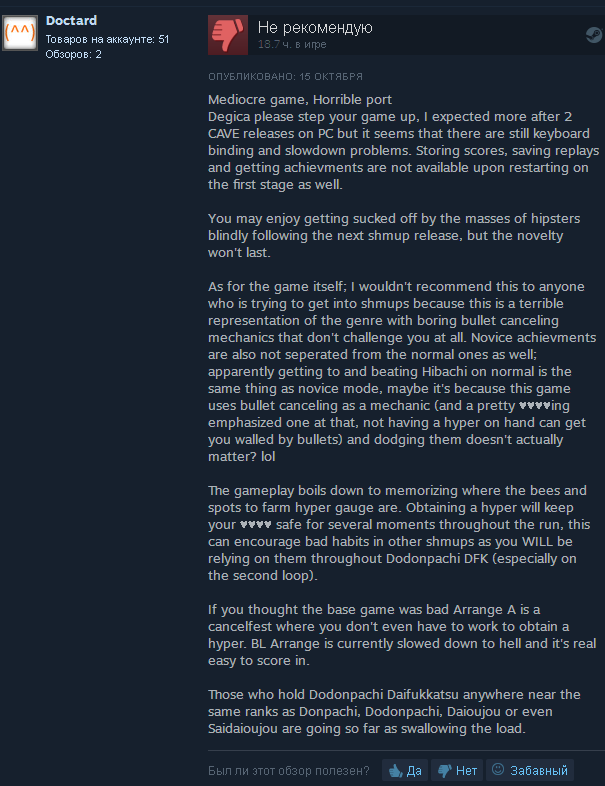 Ребятки, я в данмаку новичок и кроме стимовских jigoku kisetsukan, qp shooting и серии exceed ничего не играл. Что самое интересное, зацепила меня только первая. Подскажите какие из этих игр стоят покупки и схожи с первой: серия Gundemonium Mushihimesama Sora (как я понял это из серии кп шутинг) Deathsmiles Kamui Suguri Gun Wings Megami Strike Asterbreed