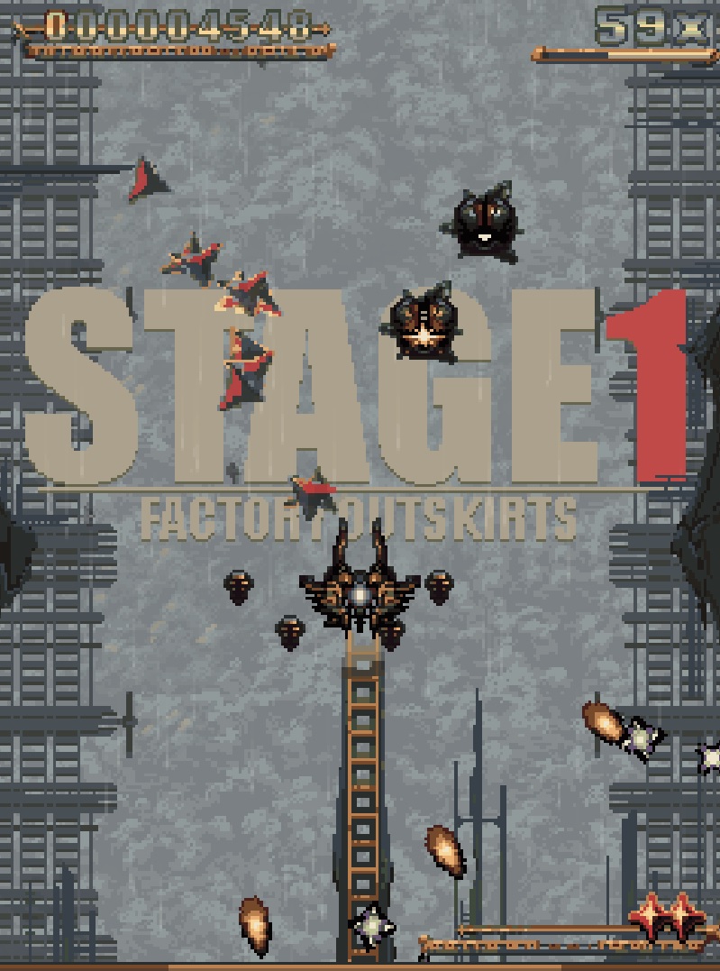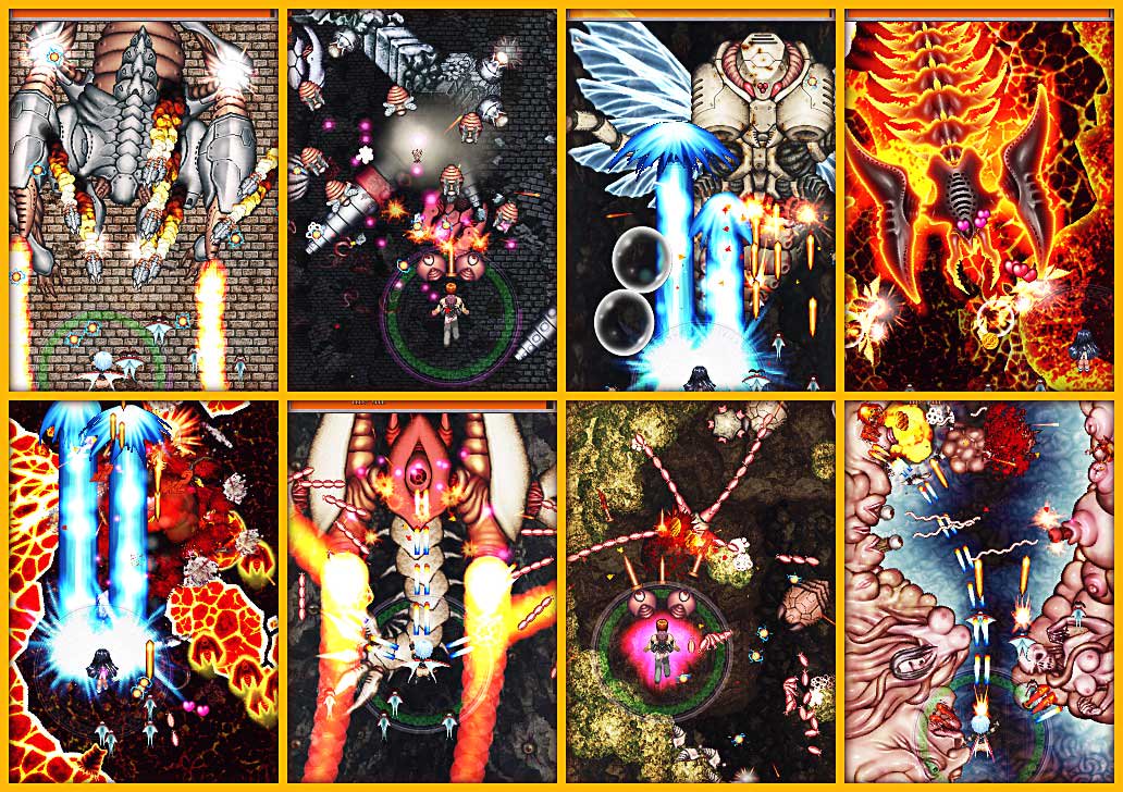 Genetos: https://tatsuya-koyama.com/works/games/genetos/ ода шмапам в целом. начинается со Space Invaders, кончается - считай, Treasure. да и в целом отсылочки-цитаточки.пятый этап - я удивлюсь, если не пародия на Raiden V с его последним этапом длиннее остальных, вместе взятых.