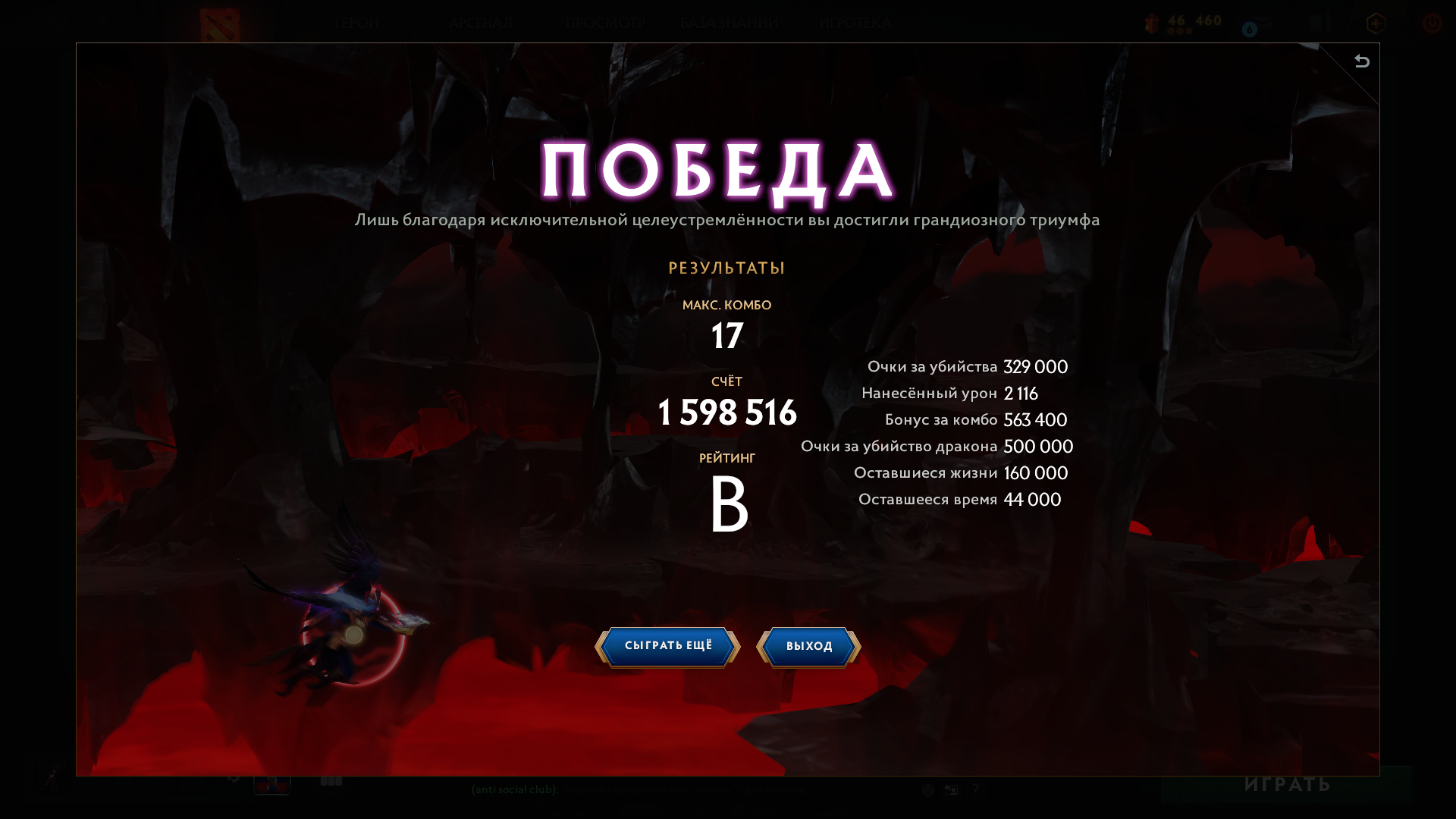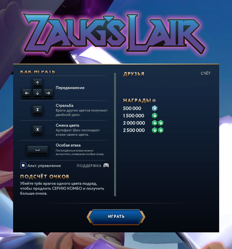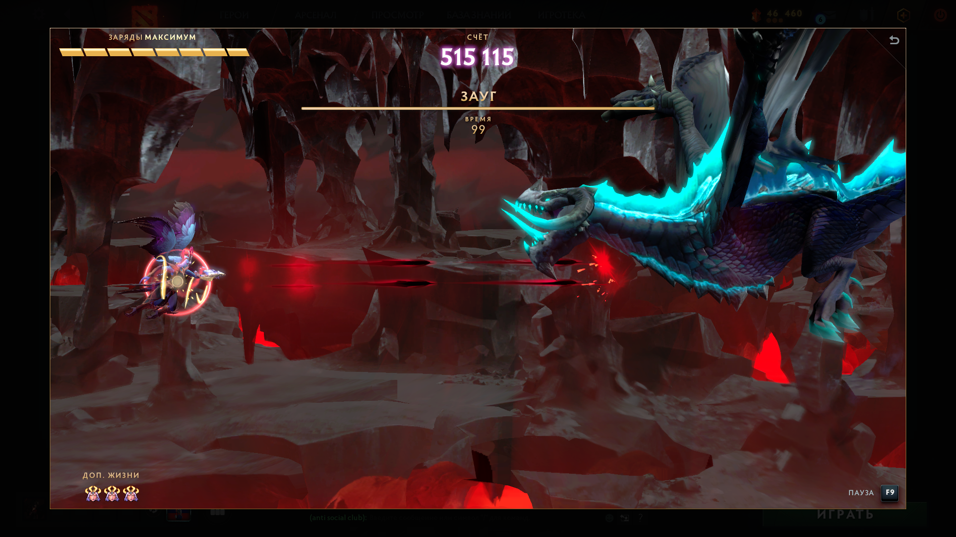 Шмап от валвов в ивенте доты, игра не поощеряет тебя сохранять жизни, уворачиваться от пуль и выполнять другие цели, которые мы привыкли в тохо. Существует красный и синий самоцвет, красный позволяет поглощать пули соответствующего цвета и само собой быстрее убивать синих врагов, с синим самоцветом ситуация аналогичная. Весь смысл этой игры в том, чтобы набить комбо на противниках до главного босса(который в свою очередь очень лёгкий), чем больше набьёшь - тем больше очков и соответственно ранг ты получишь. Комбо стакается путём убийства трёх врагов одинакового цвета, если ты сумел убить два синих противника и потом красного, то всё твоё накопившееся комбо обнуляется и фарм очков начинается по новой. Тохофаг хоть и пройдёт это с первого раза, но не на большое количество очков.