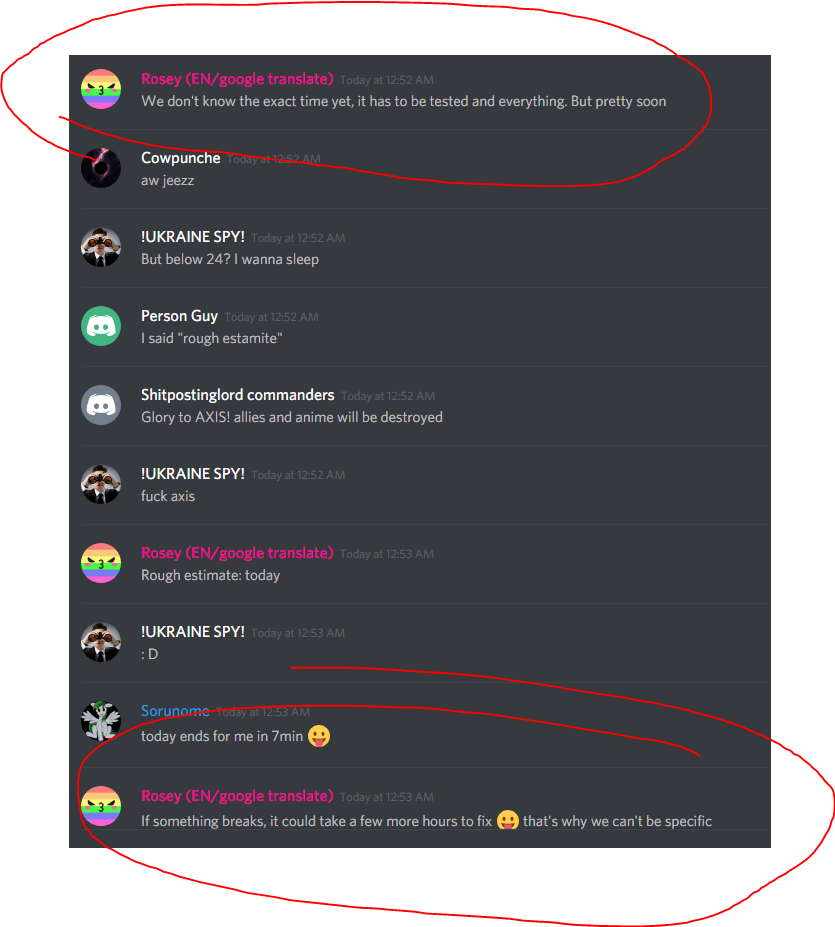 >>48044 Тут вообще вот такая хурма вырисовывается, пикрил. Админы пинают хуи. Если через 30 минут не будет вайпа - мне придётся удалиться до четырёх часов дня по мск, в универ в 5 утра вставать.