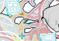 Когда-нибудь я научусь толком подписывать то, что запостил. На всякий случай: тут >>92449 первый пик - исходный кадр из гифки, второй - результат автоконвертации фиддлом. Последние два - после ручного редактирования и отличаются только заливкой гапа. И раз уж сеточка всех устраивает, оставлю ее. Контуры поправил, вернул еще теней, где мог, бантики прикрутил. Распилил на 2 части для возможности маневра.