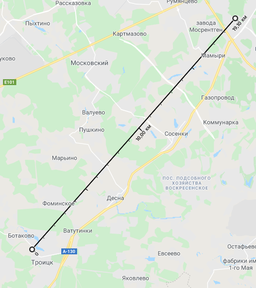 Вот, скажем, от Троицка до Тёплого стана. 20 км всего. Пустить скоростной рельсовый автобус - и будет условно 15 минут в пути. Инвестиции вполне подъёмные. Вопрос только в том, можно ли будет это легализовать?