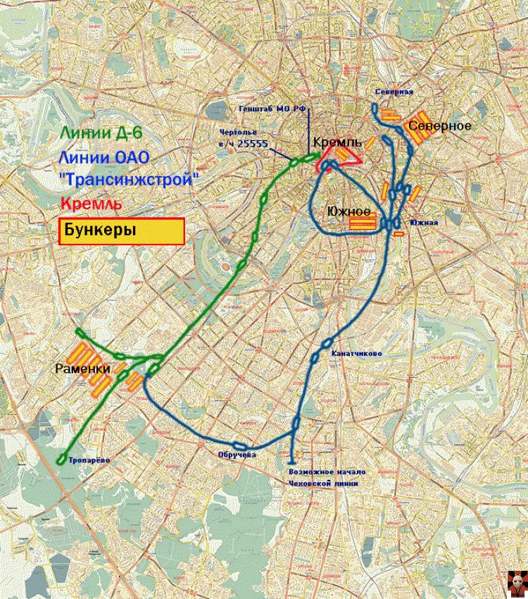 >>122405 >Что на пике Разветвлённая двухуровневая транспортная система, сооружаемая ОАО «Трансинжстрой». Строительство было начато в 1980-х годах и продолжается, хотя и с меньшими темпами, по сей день. Находится в ведении ССО (Службы Специальных Объектов) ГУСП. Соединяет Кремлёвский бункер, объекты ФСБ на Лубянке, новый бункер на Чистых прудах, бункерный комплекс на Китай-Городе под Ивановской горкой (так называемое «Северное сооружение»), комплекс зданий Администрации Президента на Старой площади, штаб МВО, бункерный комплекс в Замоскворечье в районе Третьяковской (так называемое «Южное сооружение»), сооружение гражданской обороны МВД России под Житной ул., новый бункер, расположенный примерно под парком юго-западнее Нагорной и 105 кварталом Котловки с «подземным городом» в Раменках.