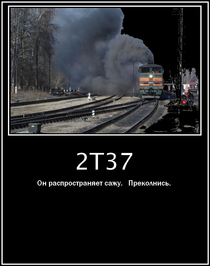 ТЫ — МАШИНИСТ ТЕПЛОВОЗА 9/10, РАБОТАЕШЬ НА СЕВЕРНОЙ ЖД @ ЛАМПОВО ОТДЫХАЕШЬ В ТЕПЛОТЕ ОБОРОТНОГО ДЕПО И ЖДЕШЬ ЯВКИ ДЛЯ ПОЕЗДКИ ДОМОЙ НА СЕКЦИИ 2ТЭ10УТК С ПАССПОЕЗДОМ @ ПРИ ЯВКЕ ВЫЯСНЯЕТСЯ ЧТО У УТКИ ВОЗНИКЛИ КАКИЕ-ТО ТРАБЛЫ С КОМПРЕССОРОМ @ ВАМ ДАЮТ 2ТЭ10В КОТОРЫЙ ПРЕДНАЗНАЧАЛСЯ ДЛЯ ОТПРАВЛЯЮЩЕГО ПОЗЖЕ ХОЗПОЕЗДА @ КАЗАЛОСЬ БЫ — УЖЕ ДОСТАТОЧНО ДЛЯ БУГУРТА, НО ТЫ ОПЫТНЫЙ ОГНЕБОРЕЦ И УМЕЕШЬ КОНТРОЛИРОВАТЬ ТЕМПЕРАТУРУ СИДЕНЬЯ НЕ ХУЖЕ ТЕМПЕРАТУРЫ ВОДЫ В ХОЛОДИЛЬНОЙ КАМЕРЕ @ ТАК КАК СОСТАВ ДЛЯ ДВУХ СЕКЦИЙ ОЧЕНЬ ЛЕГКИЙ — РЕШАЕТЕ ЗАПУСТИТЬ ТОЛЬКО ЗАДНЮЮ СЕКЦИЮ @ ТАМ СТАРТЕР-ГЕНЕРАТОР УЖ ОЧЕНЬ ВЯЛО ВРАЩАЕТ ВАЛ ДИЗЕЛЯ @ НЕ ЗАПУСКАЕТСЯ @ ПОПРОБОВАВ НЕСКОЛЬКО РАЗ. РЕШАЕТЕ ЗАПУСТИТЬ ПЕРЕДНЮЮ СЕКЦИЮ — ВРЕМЯ УЖЕ ПОДЖИМАЕТ @ СО ВТОРОГО РАЗА ЗАПУСТИЛИ @ ВРЕМЕНИ НА ПРОГРЕВ БЫЛО МАЛО НО ПОМОЩНИК РЕШИЛ ЭТУ ПРОБЛЕМУ ЗА СЕКУНДЫ, ПРОГРЕВ ВСЕ ДИЗЕЛЬНОЕ СВОИМ ПЕРДАКОМ, ПОСЛЕ ПОЛУЧЕНИЯ СТРУИ МАСЛА В СПИНУ @ БУХТЯ ДИЗЕЛЕМ, ТАК ЧТО ДРОЖАТ СТЕКЛА, ДЕЛАЯ ПОД СЕБЯ МАСЛОМ И РАЗБРАСЫВАЯ ИЗ ТЕЛЕЖЕК ПРОМАСЛЕННУЮ ВЕТОШЬ, ВЭШКА ВЫПОЛЗАЕТ ИЗ ДЕПО @ ЗАШЛИ ПОД СОСТАВ ВОВРЕМЯ @ ПРОБА СДЕЛАНА — ВОТ УЖЕ ВРЕМЯ ОТПРАВЛЕНИЯ НА СЕМАФОР. @ ПО СТРЕЛКАМ ГОРЛОВИНЫ СТАНЦИИ ЕХИДНО ПОЛЗЕТ МАНЕВРОВЫЙ С ВАГОНАМИ, ВАМ КРАСНЫЙ @ ОТПРАВИЛИСЬ С ОПОЗДАНИЕМ, НО ЗАТО В КАБИНЕ НЕ ТАК УЖ ХОЛОДНО, НЕСМОТРЯ НА СЛОМАННУЮ ПЕЧКУ @ ПОЧТИ НАГНАЛИ ГРАФИК @ ДАЖЕ НЕБО, ДАЖЕ НАЧАЛЬНИК СЖД ГОРДЯТСЯ ТВОИМ МАСТЕРСТВОМ. ДАЖЕ ЯКУНИН, ПОПИВАЯ ВИСКИ ОКОЛО СВОЕГО ШУБОХРАНИЛИЩА, ВСПОМИНАЕТ ТЕБЯ И ГРИТ "МАЛАЦА" @ ВПЕРЕДИ ПОДЪЕМ @ КАЗАЛОСЬ БЫ — НИЧЕГО, ВСЕГО-ТО НАКИНУТЬ ЕЩЕ НЕСКОЛЬКО ПОЗИЦИЙ @ НО ВОТ ТЕМПЕРАТУРЫ ВОДЫ И МАСЛА СТРЕМИТЕЛЬНО ПОПОЗЛИ ВВЕРХ ДАЖЕ ПРИ ОТКРЫТЫХ ЖАЛЮЗЯХ И ВКЛЮЧЕННОМ ВЕНТИЛЯТОРЕ ХОЛОДИЛЬНИКА @ ОКАЗЫВАЕТСЯ ЭТО УНИКАЛЬНОЕ ВЕДРИЩЕ УМУДРЯЕТСЯ ГРЕТЬСЯ ДАЖЕ НА ВОСЬМОЙ ПОЗИЦИИ ДАЖЕ ЗИМОЙ @ ЗАПРЕТИЛ ПОМОЩНИКУ ПОКА-ЧТО ХОДИТЬ В ДИЗЕЛЬНОЕ - ЛИШНИЕ ГРАДУСЫ ТАМ НИ К ЧЕМУ И ПОШЕЛ САМ РАЗБИРАТЬСЯ ПЕРЕДАВ ПОМОХЕ УПРАВЛЕНИЕ @ ИЗ-ЗА ЧЕГО ЧУТЬ НЕ ПРОВТЫКАЛИ ОСТАНОВКУ НА О.П. "СЕВЕРНАЯ ГЛУХОМАНЬ" @ КИНУЛИ В ШЕСТОЕ И ЗАТОРМОЗИЛИ НУ ПОЧТИ У ТАБЛИЧКИ "ОСТАНОВКА ЛОКОМОТИВА" @ ЗАТО НАГНАЛИ ГРАФИК @ ДАЛЕЕ РАЗЪЕЗД И СКРЕЩЕНИРЕ С ГРУЗОВЫМ КОТОРЫЙ ОСОБО НЕ СПЕШИЛ ПРОСЛЕДОВАТЬ @ ОТСТАВАНИЕ ОТ ГРАФИКА @ ПОЛНОСТЬЮ ОТКРЫЛИ ОКНА В КАБИНЕ ЧТОБ ХОТЬ КАК-ТО ОСТЫТЬ @ ТАК КАК ВПЕРЕДИ ЗАТЯЖНОЙ ПОДЪЕМ ТЫ РЕШАЕШЬ ВСЕ-ТАКИ ПОПЫТАТЬСЯ ЗАПУСТИТЬ И ЗАДНЮЮ СЕКЦИЮ ЧТОБ ЕХАТЬ НА НИЗКИХ ПОЗИЦИЯХ @ ТАКИ С ЧЕТВЕРТОГО РАЗА ЗАПУСТИЛАСЬ!!! @ ПОЕХАЛИ НА ПОДЪЕМ @ СБРОС НАГРУЗКИ ДИЗЕЛЯ ЗАДНЕЙ СЕКЦИИ @ БРИГАДА ПУТЕЙЦЕВ НА ПЕРЕГОНЕ НАБЛЮДАЛА УНИКАЛЬНЫЙ ВИД ТЯГИ - РЕАКТИВНУЮ