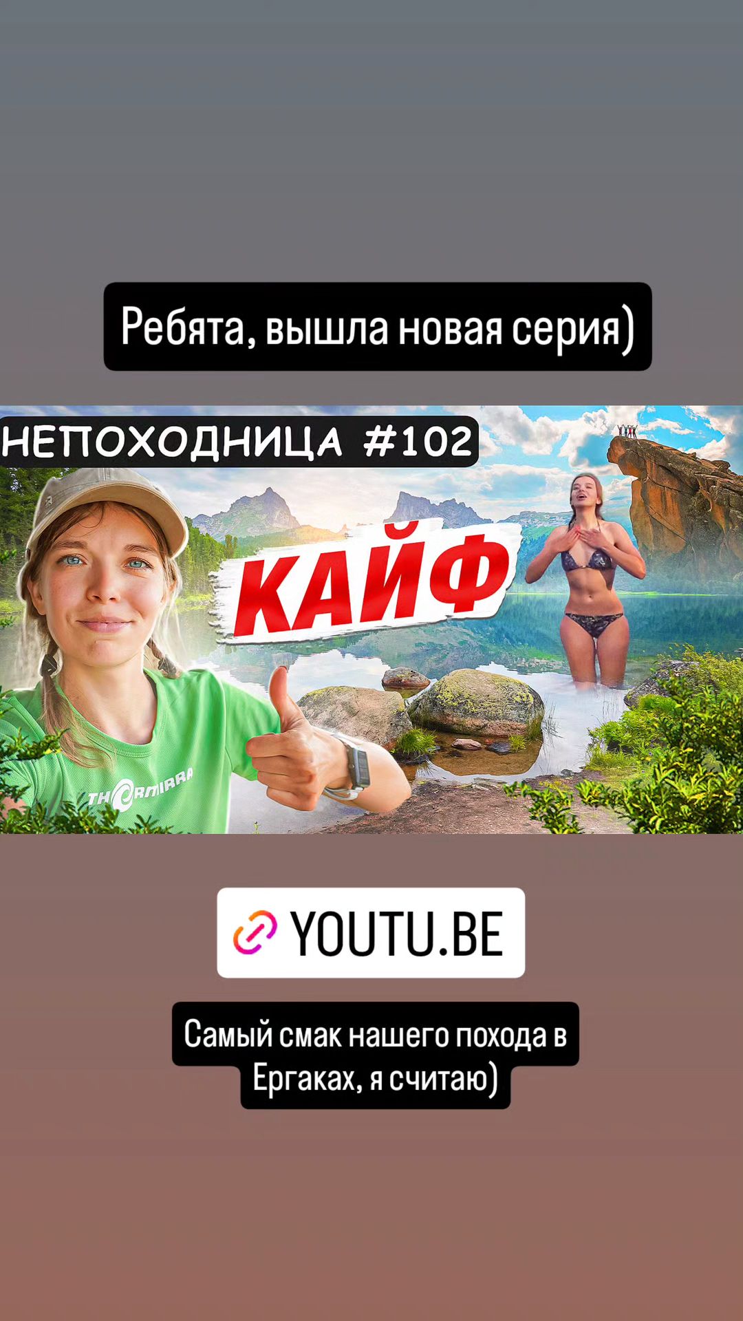 >>69262 А че вы доебались до Жени? Ходит в походы, снимает. Ноет, когда рядом нет никого. Показывает как есть. Благодаря ей начал сам в походы коммерческие ходить. Прошел и ее маршруты, не жалею. Было тяжело, но мне понравилось!