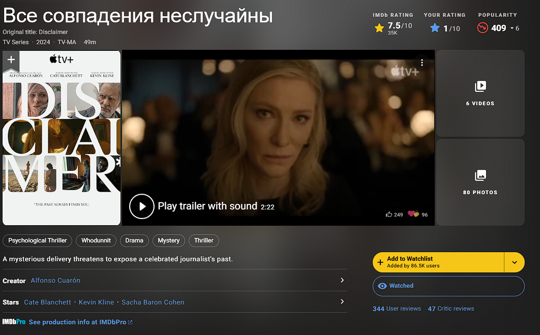 Начал смотреть. Ничего не знаю о фильме. Тупо рандомно рылся в кинопоиске, а он там среди популярных детективов. Ну и Кейт Уинслет – великая актриса, в хуйне не снимается. И получил неожиданный приятный сюрприз Кейли Спейни, мою детку, по которой фажу. Не знал, что она есть в касте, когда приступал к просмотру. Посмотрел половину первой серии. Надеюсь, будет интересно. Это ведь главное в детективе.