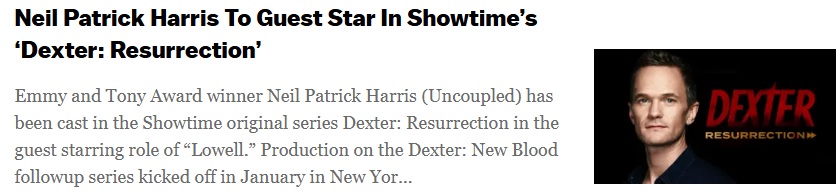 >>3406198 Мы знаем шо собрались делать 3 сезона, так шо декстера (по-крайней мере в этом сезоне) точно не убьют. Мы знаем шо батисту закредитовали только на 1 серию, так шо декстера (по-крайней мере в этом сезоне) точно не споймают. Значит будет весь сезон только про хоббита и нытье гаррисона, а след серия будет соответственно тупо про то, как декстер хрюкнет импостора, и попадет к хоббиту.