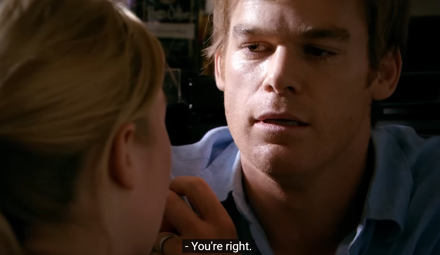 Пример хорошего Декстера, гораздо более высокого качества, где авторы сценария СМОГЛИ, это You от Netflix. Там тоже присутствуют посредственные книги авторства Кэролин Кэпнес с криповым главгероем и сделали из этого что-то гениальное. Пенн Бэджли тоже крутой актёр, как и Холл, и сценаристы также сделали из крипового Джо из книг, легендарного Джо из сериалов - глубокого персонажа уровня Достоевского. Только сделали это намного более талантливо. Да так, что третью книгу Кэпнес, по отзывам читателей, написала уже с оглядкой на сериального Джо. Поэтому Декстер - это всё-таки средний сериал при всех своих достоинствах, а You - это один из топовых сериалов за всю историю производства Netflix.