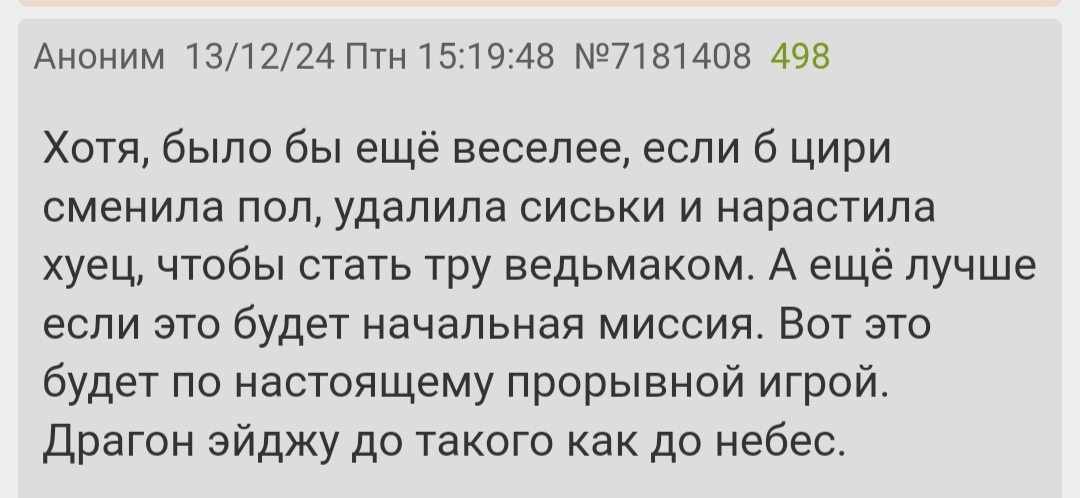 >как будто не ведьмак, а какой-то вшивый постапок для девочек фанаток постеров из журнала все пёзды