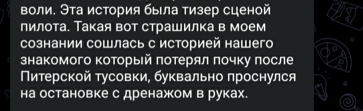 2) Схема, показанная на примере парня с вечеринки, пиздец какая странная. Ни анализов, ничего, просто взяли рандомного хуя с тусовки и у него вырезали почку. И это даже не какой-то левый узбек без документов, это вполне себе местный чел, явно благополучный. И что, ментам будет насрать совершенно, никто не будет искать?