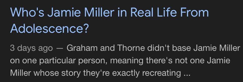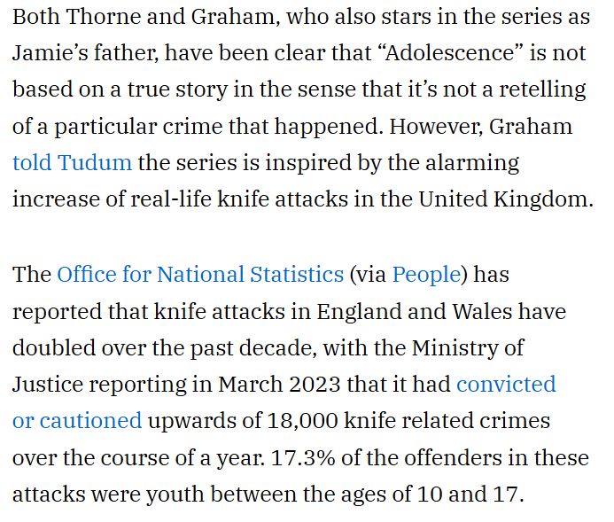 Ну типа. Со словами "Для тех, кто думает, что это неправда, вот слова создателя сериала" Вудс выложил скриншот какого-то сайта, где говорится: «"Потом была ещё одна девочка в Южном Лондоне, которую зарезали на автобусной остановке". Грэм приводит в пример трагическую смерть 15-летней школьницы Элианн Андам, которая была убита Хассаном Сентаму после того, как 27 сентября 2023 года вышла из автобуса возле Уитгифт-центра по пути в школу Old Palace of John Whitgift в Кройдоне».