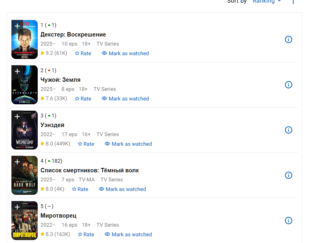 >>3426669 рейтинги серий. последняя всем прям вкатила. в среднем снижаются, но все еще высокие. обсуждение я хз как оценить. на имдб вот сейчас что в топе. даже имдб считает что чужой как земля популярнее уэнздей помойки. посмотрим что к финалу будет.