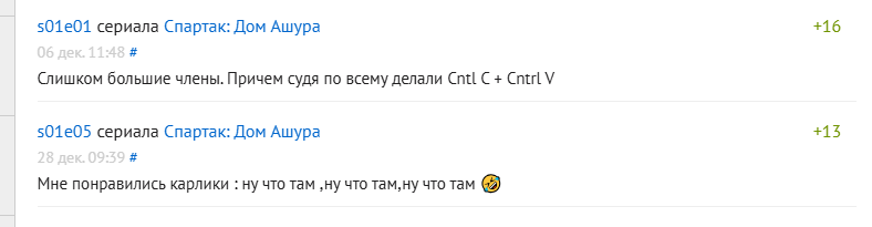 Так что было бы с чем сравнивать а так на безрыбье новый спартак реально хорошо смотрится. Хотя это не лучший из сезонов. Я пока вангую: кровь и песок > боги арены > месть > дом ашура > армия проклятых