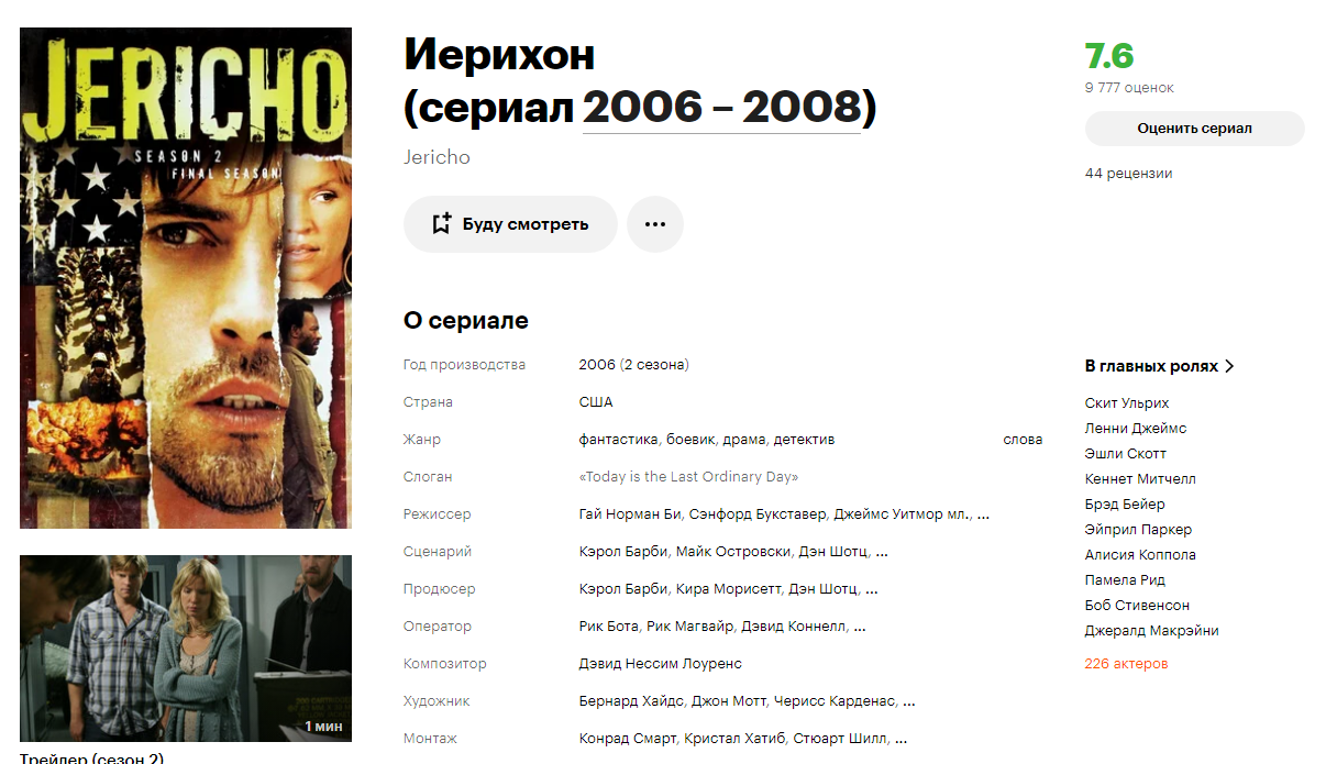>>3235484 >там не такие уж великие бюджеты Больше, чем у тех самых "сериалов для домохозяек". А рейтинги очевидно меньше. Сейчас на эфирном ТВ в США сплошь одни процедуралы и их спин-оффы, где можно пропустить полсезона и спокойно продолжить смотреть, ничего не потеряв. С Jericho и ему подобными сериалами так не получится.