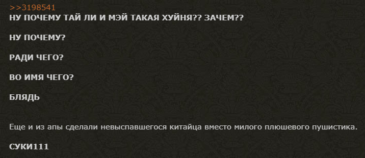 >>3199176 Вот это примерный фенотип утенка Аанга. Они реально думают, что если проговорить с улыбкой на устах псевдо-мотивацию антагониста преувеличивая ее то они таким образом побеждают кого-то. Увы, от таких постов Озай не перестанет быть потешным клоуном, а история Аанга цирком где за группой детей (главной поболью Озая) гоняется его злодейская дочь.
