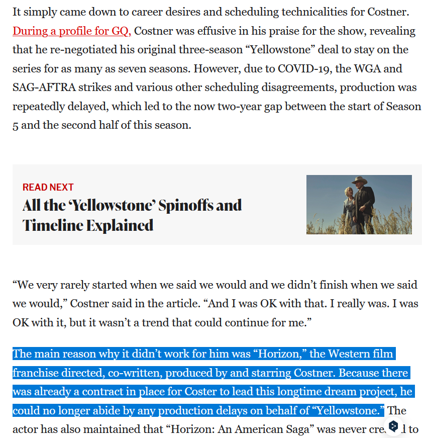>>3337229 Не, понятно, голивуд есть голивуд, деньги за проекты, есть ресурс, можно насрать хоть 10 сериалов за год по шаблону. Но нахуя было надо так сикать на зрителей, снимая одновременно 2 приквела к охуенному сериалу, который сам начал и ещё не закончил? Походу Костнер просто нахуй послал этого мудака из-за этого.