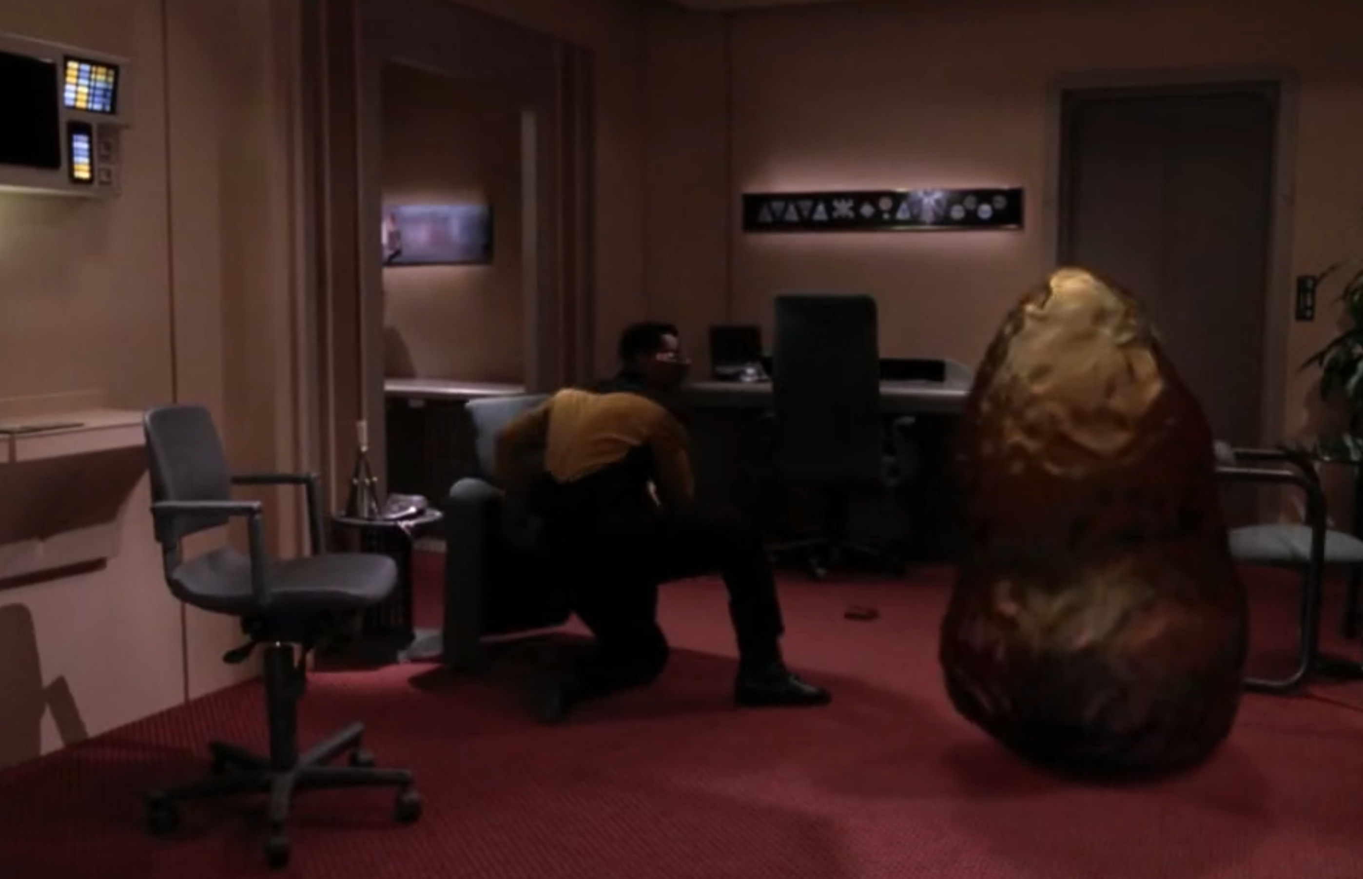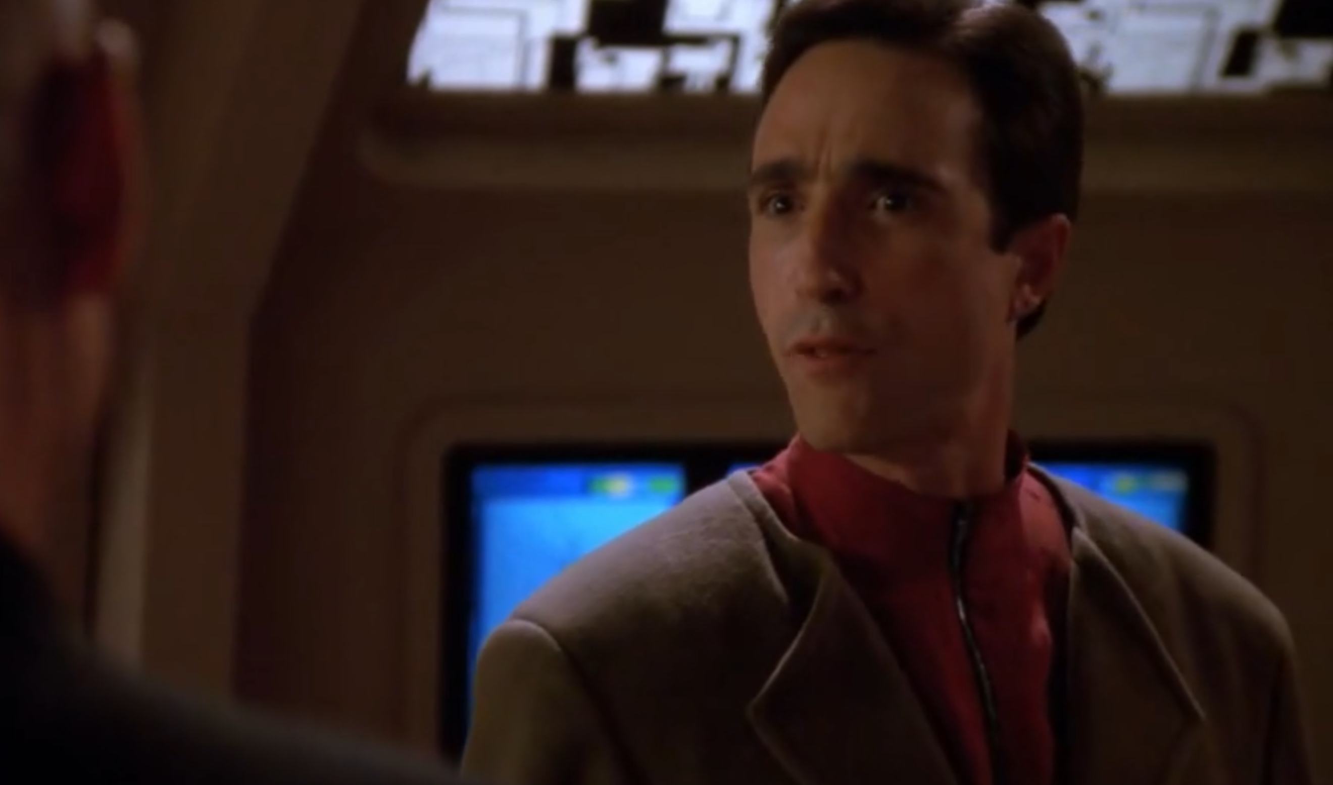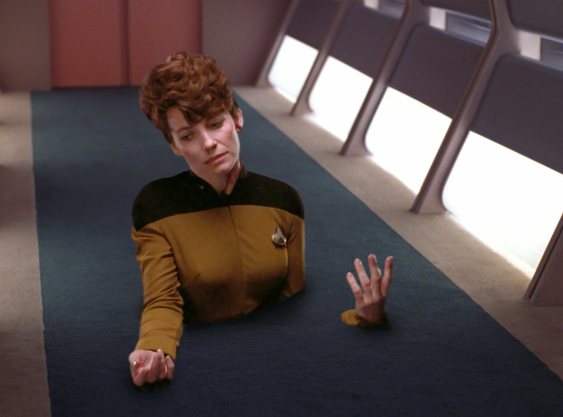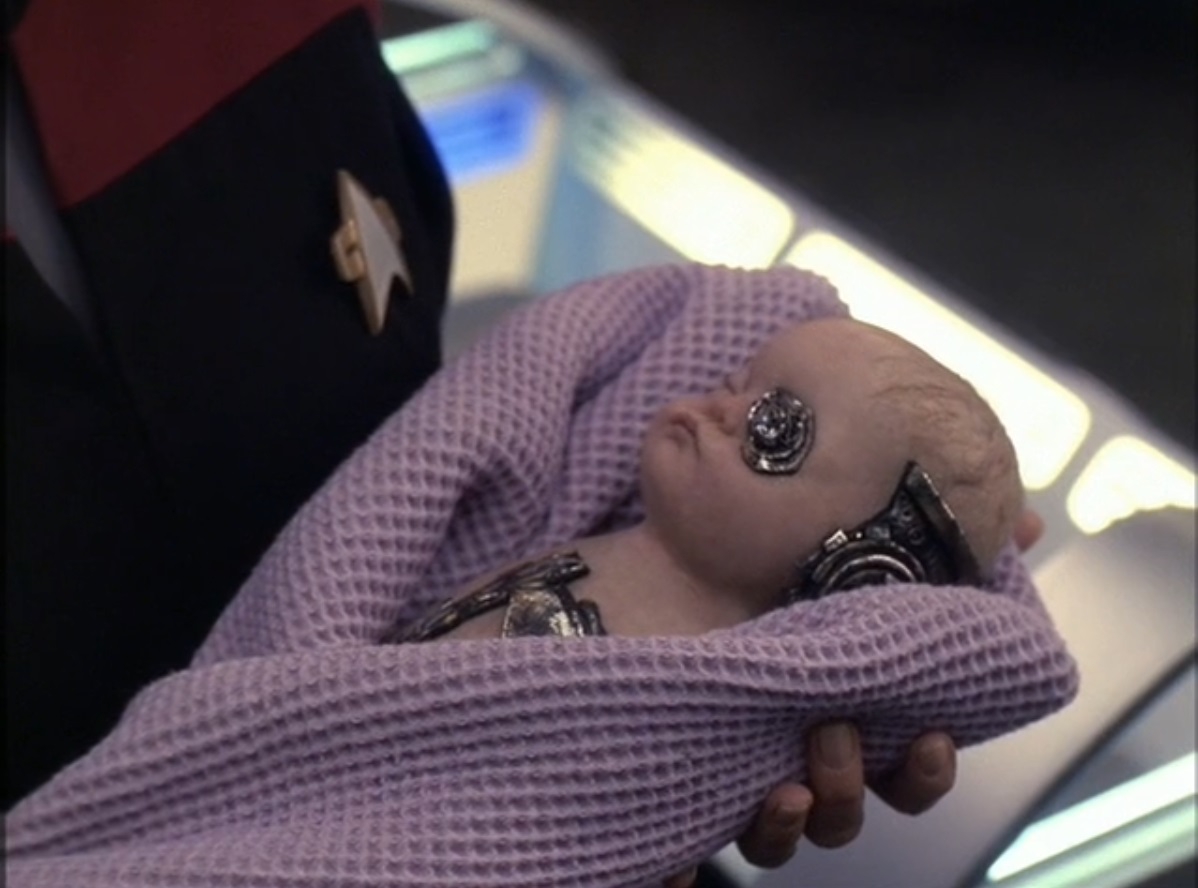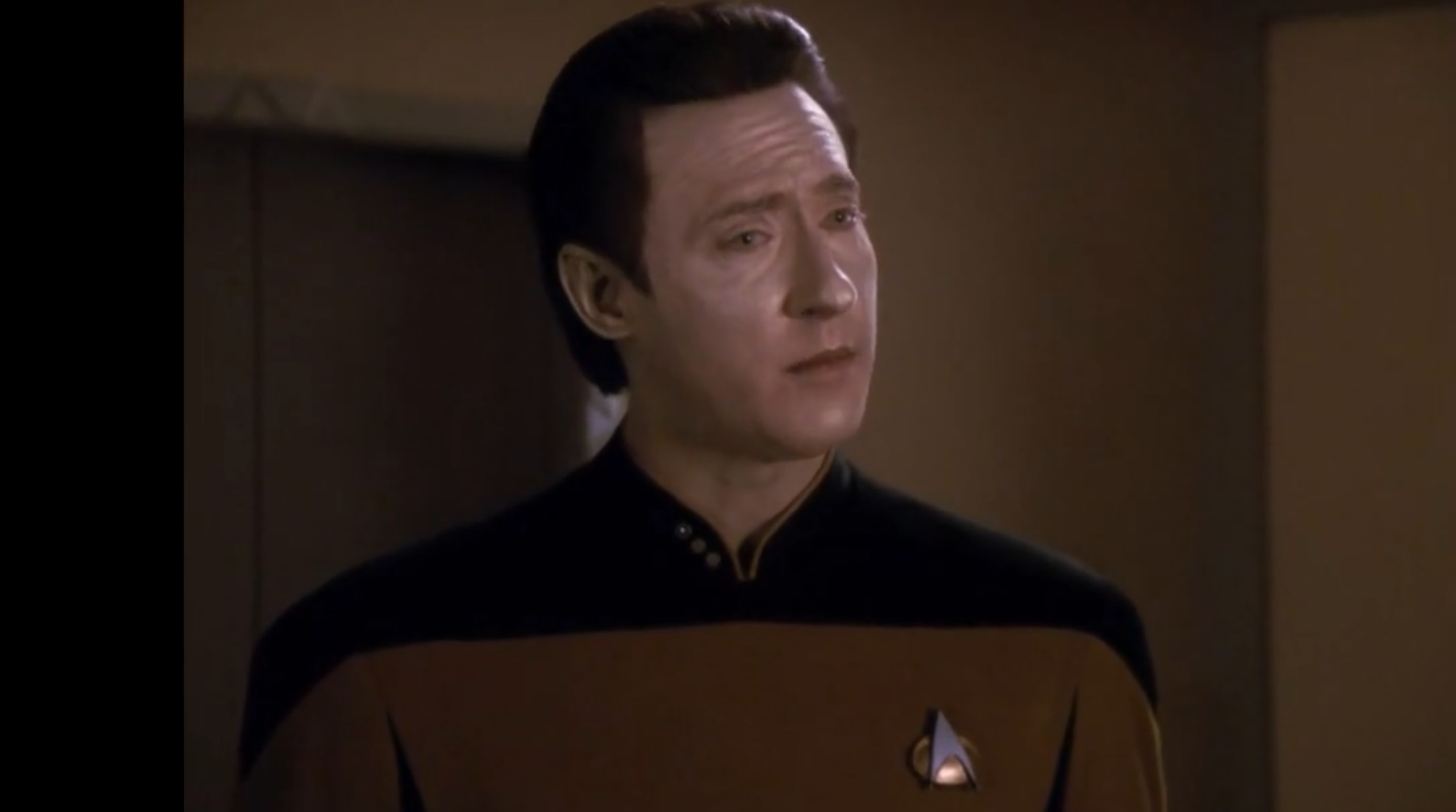 Тут прямо максимальный обсёр Дейты. Всю серию ходил рядом с мамашкой, утешал её, проигрывал записи сына, и в конце когда она за сына отомстила, он ее втоптал в говно, ты мол хуйню натворила, сыну теперь грустно и он разочарован тобой. Аж терминатором повеяло от такой эмпатии Дейты, мамашка небось повесилась после его слов.