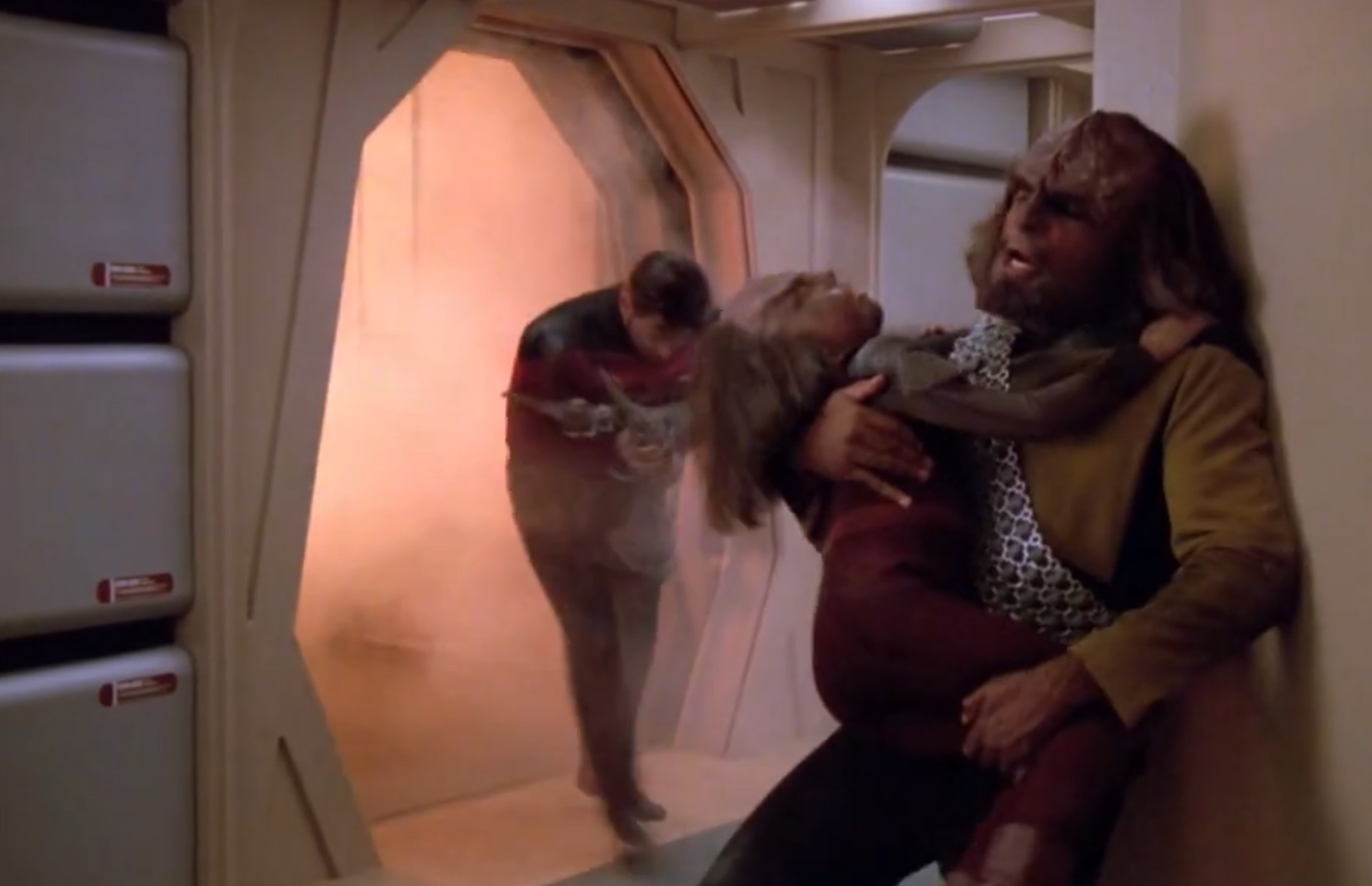 Че-то проиграл с этой серии. Пикард вместо того чтобы Дейту с Ворфом послать за ребенком, хотя ясно что там скорость и сила нужна, посылает Райкера. Райкер обсирается уже на подходе, дверь открыть не могут, хотя Дейта бы просто раздвинул. Потом обсираются уже вдвоем, не могут шпалу поднять. Пока Райкер где-то бегает Ворф один клингонскими молитвами поднимает шпалу (видно честь помогла, про которую всю серию базарил). А Пикард по ходу так трясется за Дейту, что даже на пожар его не послал, вдруг развалится единственный андроид. Еще и сразу отдал приказ подрывать бомбы, пофиг что мясных сотрудников там разъебет.
