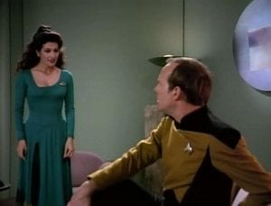 Еще вспомнить инженера Баркли, к которому сразу стала липнуть советник Трой, когда того до чеда инопланетяне проапгрейдили, а как даунгрейднули, сразу отморозила. И та же Трой, когда совершенного главу планеты послала, но который на чедака не тянул, а скорее на омегана. Или тян, которая на Мориарти в голодеке висла, потому что он маньяк и социопат такой загадочный. И тян, которые на Дейту вешаются, потому что он из-за отсутствия чипа часто себя по социопатски ведет. А еще прямая ссылка, когда Q-тян заполучила Райкера, который делает все, что она захочет, и он ей тут же не нужен стал.