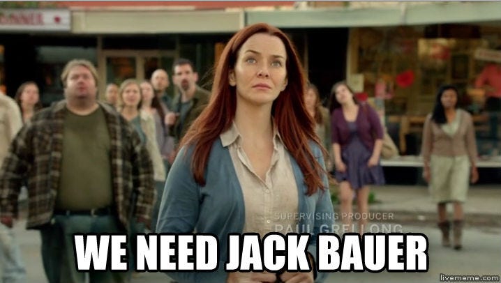 Почему я люблю 24? Потому что абсолютно тупейший штамп с неуязвимым главным героем и косыми врагами это охуенно в контексте Джека. Зритель хочет чтобы все злодеи были выебаны и Джек это осуществляет.