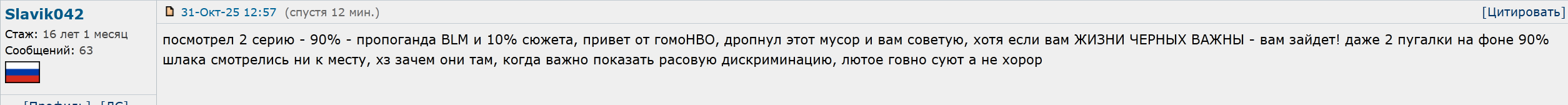 >>3443138 По моему постер пиздит, там негр майор среди главных и второстепенна негрошкольница в первой серии, +негр киномеханик и водитель мельком, считай их нет пока. >>3443181 Слишком многоходовочно для нынешних фильмов, наверняка злые расисты хотели просто показать негра слабым. >>3443170 >У меня возникло ошушение, что HBO захотели высрать свои «Очень странные дела». Считай в сабже есть секретная база рядом с городом, Чувак, подобный троп не в очень странных делах придуман, у самого Кинга об этом как минимум есть рассказ Туман. >>3443180 Нет, батек его служил обычным солдатом. >>3443187 >У многих с этим сериалом связано столько ожидании, что подведут граммотно к одному, да расскажут предыисторию второго Чиво? Второго чего? >>3443239 Сомневаюсь что сегрегация могла быть там где несколько десятков человек на округу, но наверняка покажут чтобы обличить расизм.