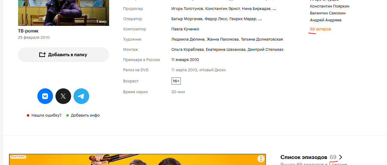 🎾 также в касте — Светлана Иванова, Лиза Шакира, Владимир Мишуков, Павел Ворожцов, Валентина Малыгина, Валерий Степанов, Олег Чугунов плюс камео известных теннисистов Дмитрия Турсунова и Николая Давыденко.