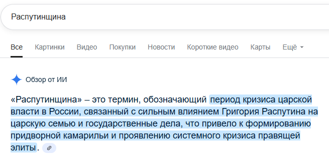 >>3426394 >бородадый дикарь в рясе, демонстративно попирающий всяческие нормы общественного приличия Ну вот это и есть миф о Распутине. Это просто старец религиозный был, а все сказки о нем, что он там что-то попирал, это англосаксы придумали. Даже какой-то шпион английский в мемуарах об этом писал, как они создали этот миф и распространили по Европе.