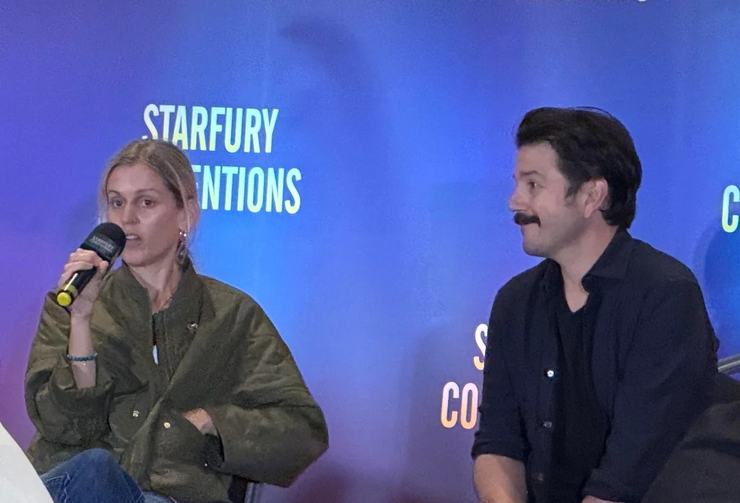>A great question about the compression of the seasons - was there anything that couldn’t be shown that you would have liked? Denise: there was meant to be a ‘baby Dedra’ flashback episode to the kinderblock. “Dedra with her hair in a bun from age 3”. Diego focused on how the quality would have suffered because the bar would have dropped and praised the decision to compress in general. Season 2 was written before S1 was released so the writing wasn’t about what was popular in S1. So the writing had integrity. Если б таки был флэшбек, пришлось бы выкручиваться с тем, что тогда ещё Республика была