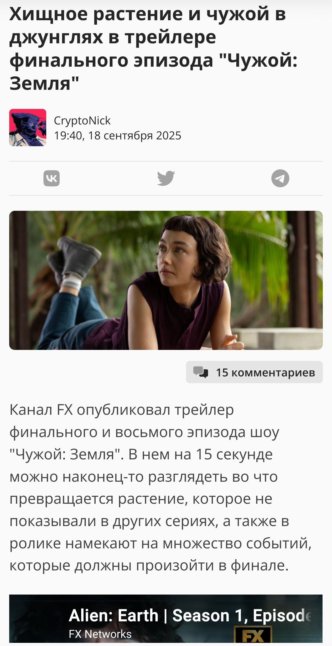 Щас в новой серии придет этот убер спецназ от Ютани, которых показывали буквально с первых тизеров, в каждом ролике. Типо какие то вояки жесткие, укомплектованные. В итоге намотаются на ксеноморфа и сдохнут за 5 секунд (уже показывали в тизере). А я то рассчитывал что у них будет своя спецоперация длящаяся весь сезон. Отдельная сюжетная линия...