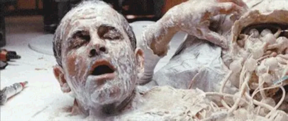 Как это применялось: Смесь наносили на костюм актера (в первом фильме — внутри костюма болгаского актера-гиганта Боладжи Бадеджо) или на макет Чужого. Чтобы заставить жидкость стекать и капать, использовали простые, но гениальные методы: Скрытые трубки и шприцы: В костюме или на декорациях прятали тонкие трубки, по которым жидкость подавалась в нужные места. Грелки: Костюм нагревали изнутри, чтобы смазка становилась более жидкой и начинала стекать сама по себе, создавая эффект "потоотделения".