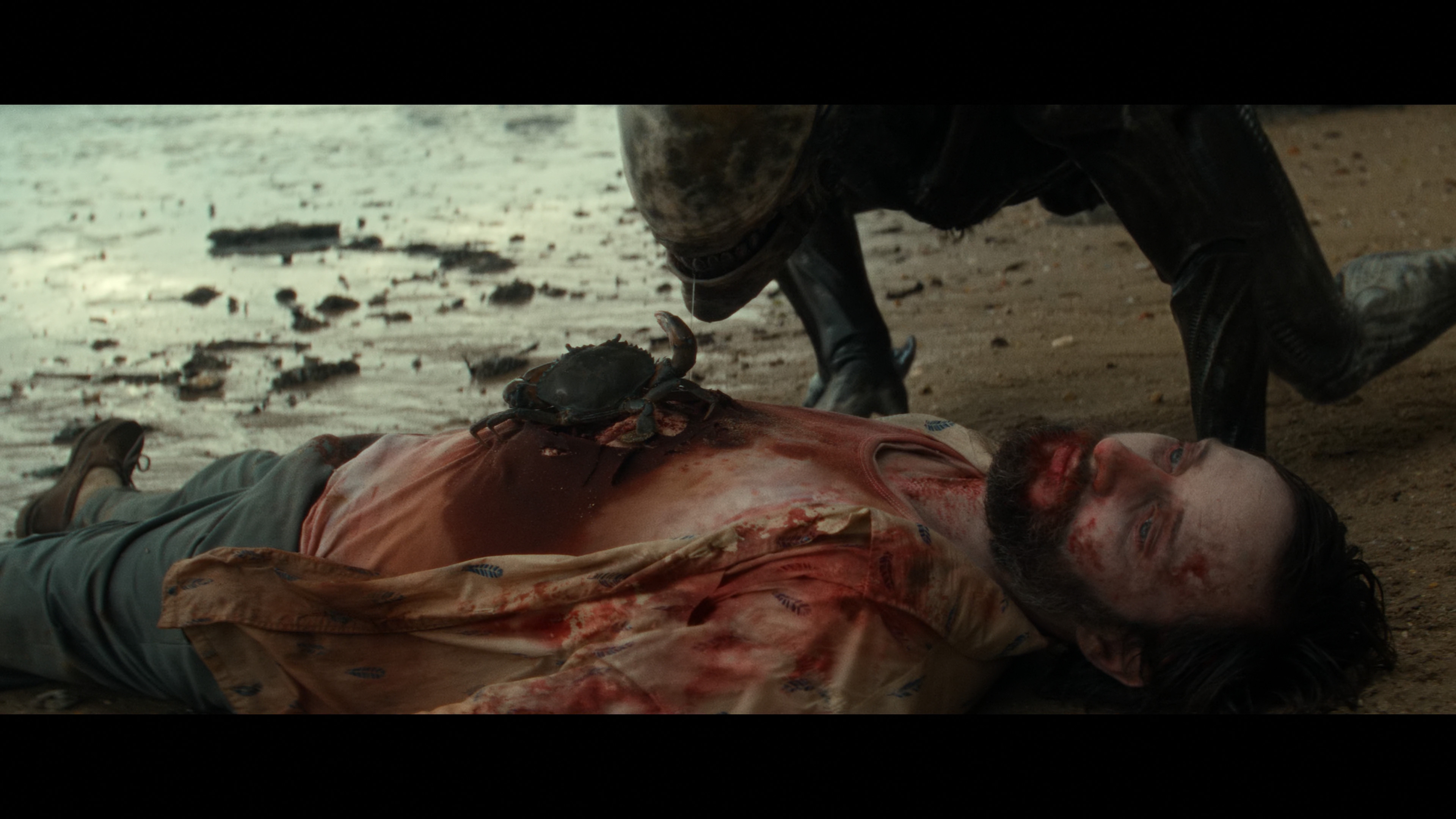 У них лежат горы свежайших трупов здоровенных охранников, но глазик убежал на пляж и залез в растерзанного насквозь бородача, который на тропическом солнце за полдня уже пованивает и крабами обглодан. Нахуя? А потому что актер был у Хоули в последнем сезоне Фарго, и надо его вписать в продолжение. Как глаз собирается в нем жить, если организм мертв и очень сильно поврежден?