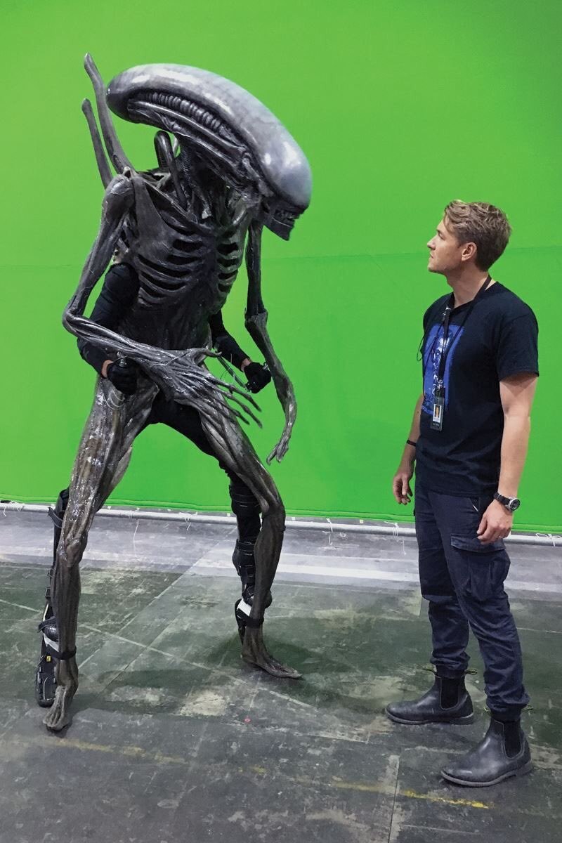 В этих фильмах продолжили использовать комбинацию методов: Практические эффекты: Гримеры и инженеры создавали сложные анимитронные макеты голов Чужих со встроенными насосами для постоянного слюнотечения. * CGI для доработки: Компьютерная графика использовалась для удаления трубок, добавления объема потокам жидкости или усиления свечения.