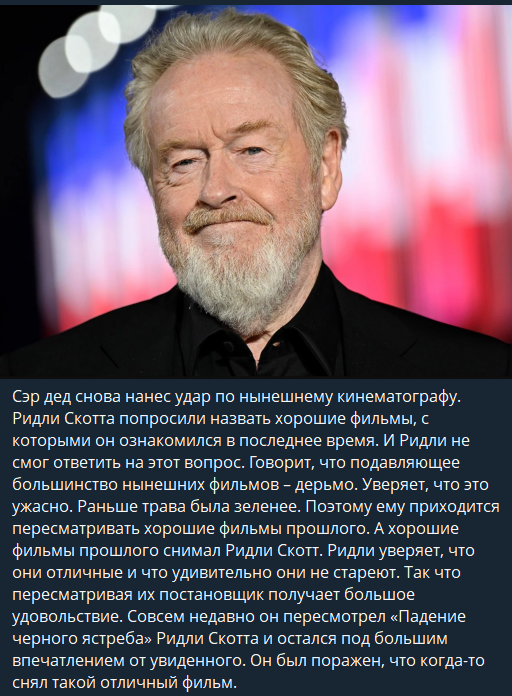 >>3437923 бабки не пахнут. все мы понимаем, что это всего лишь имя в титрах ради хайпа. врядли он хоть пальцем шевельнул чтобы как-то повлиять на ход сьемок и вправить мозгу хуйли. а если бы было реально пиздато - все говорили бы, ебать дед, ну дает. торгануть именем это всегда риск, и в этот раз он не оправдался